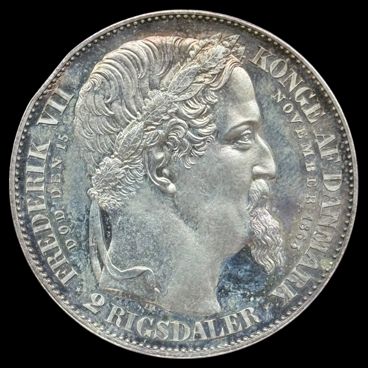 1863, 2 Rigsdaler, Chr.IX, Sieg 4, Hede 3, Kva. M “ks” NYPRÆG, kun lavet i 39 eksemplar