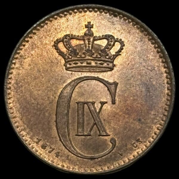 1874 2 øre Chr.lX Kva. 0-S