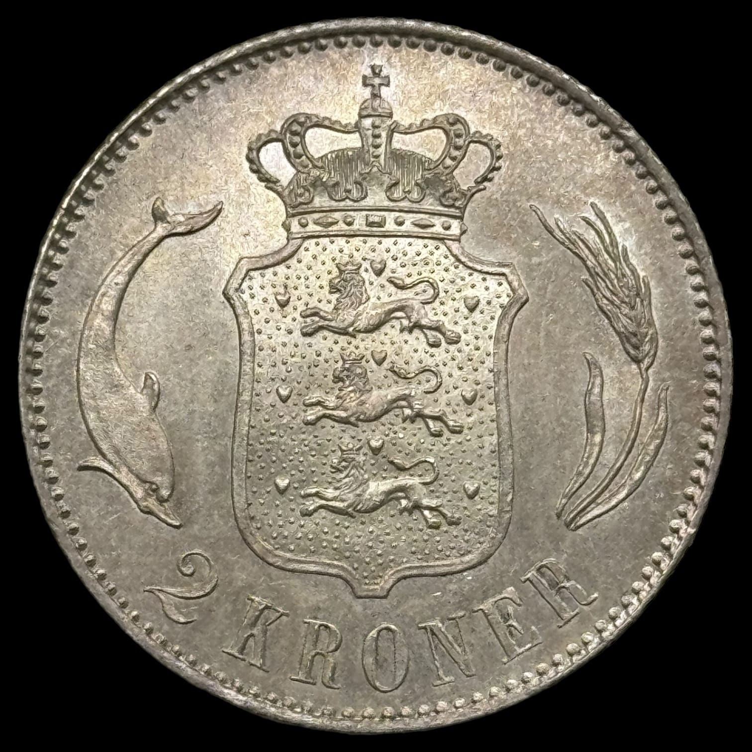 1875 2 krone Chr.lX Kva. 0