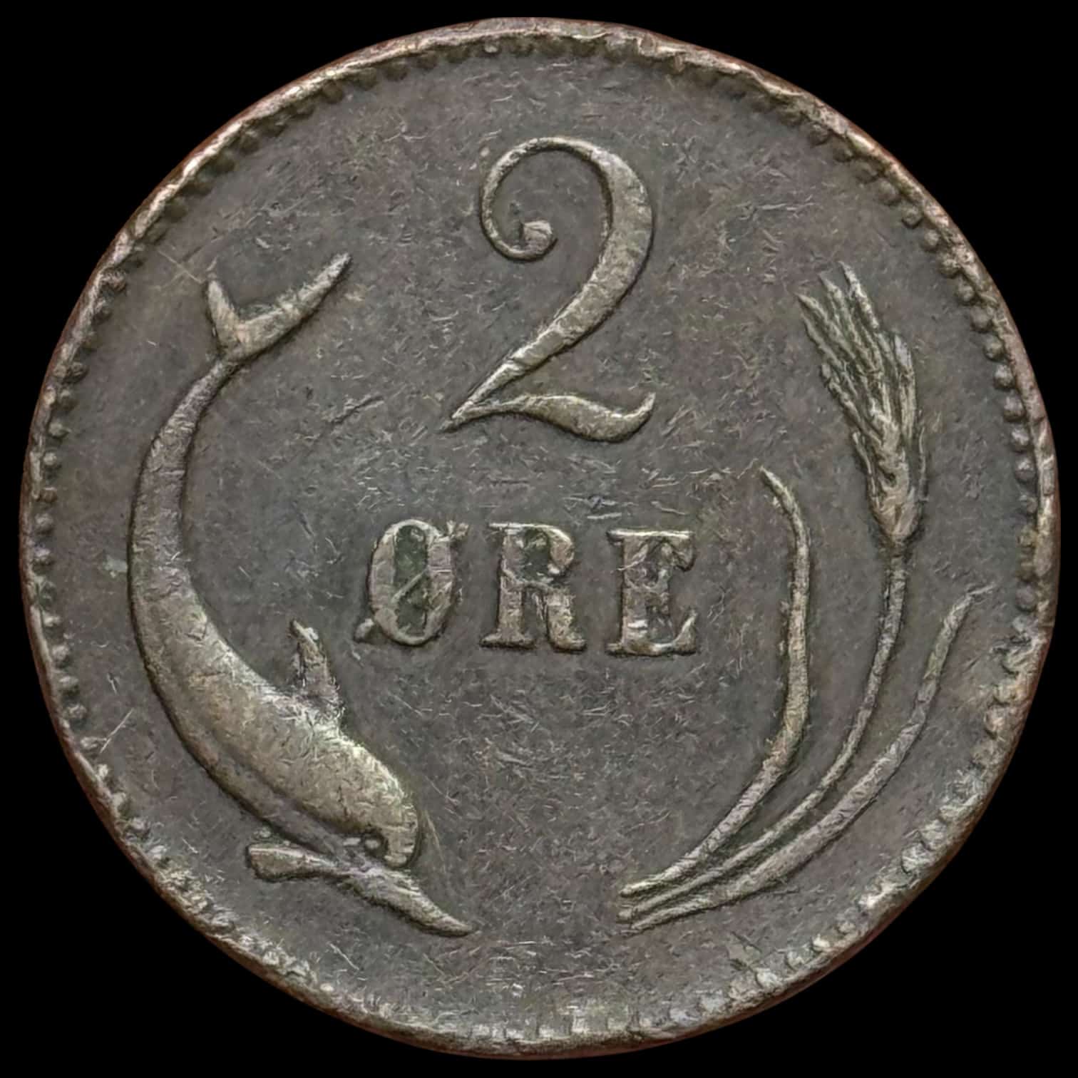 1876, 2 øre, Chr.IX, Sieg 1.1, Hede 18A, Kva. 1-1+ “div. kantskød”