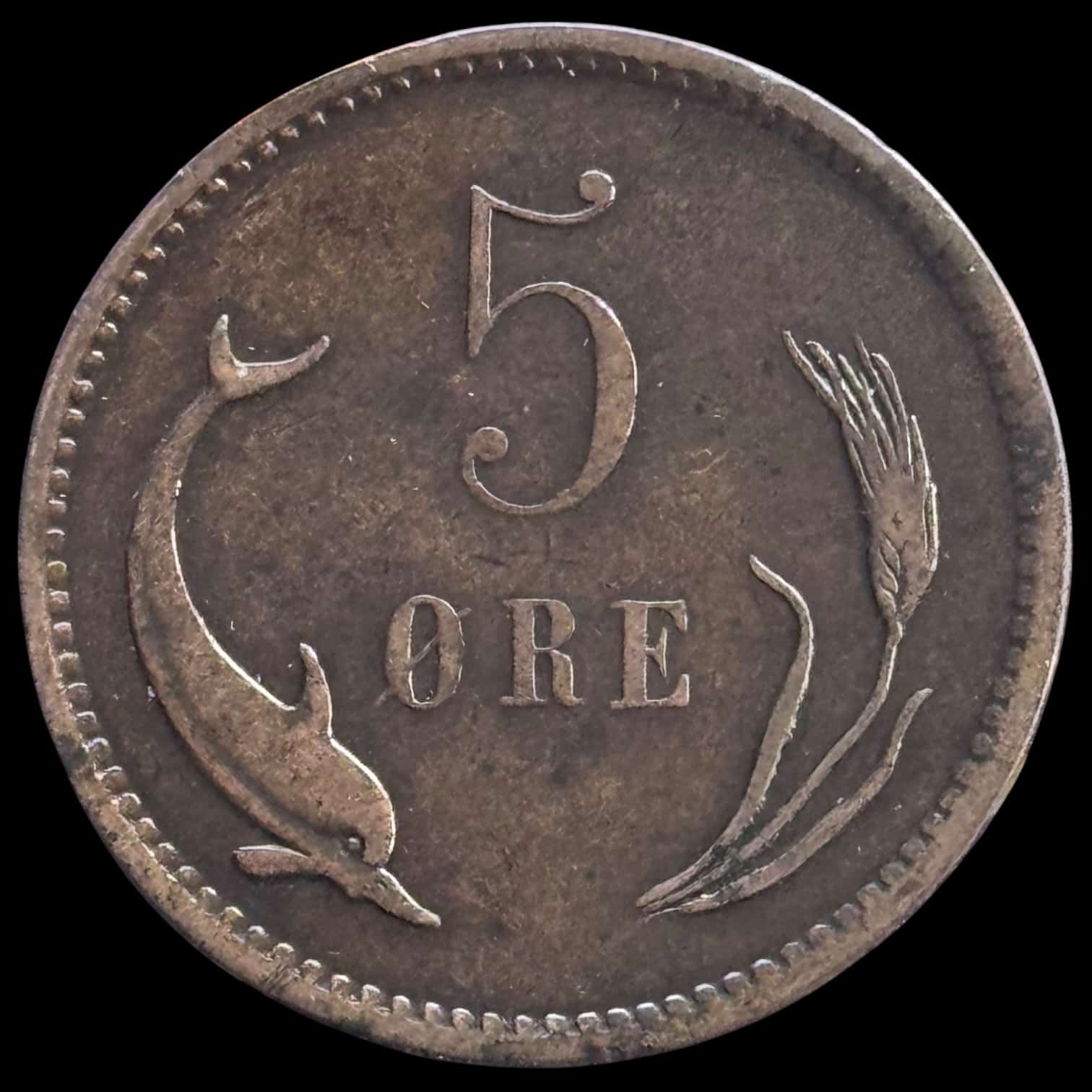 1890, 5 øre, Chr.IX, Sieg 1.1, Hede 17A, Kva. 1-1+