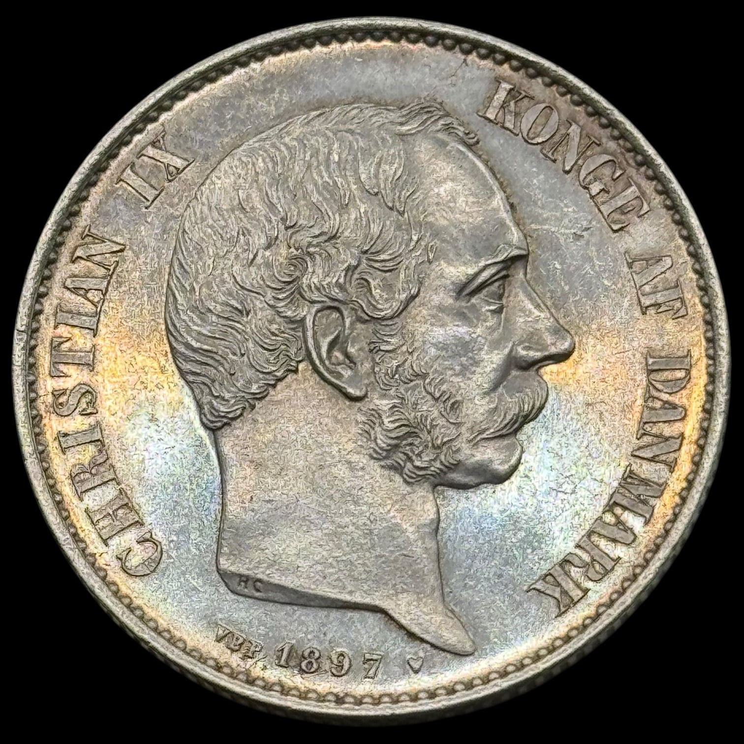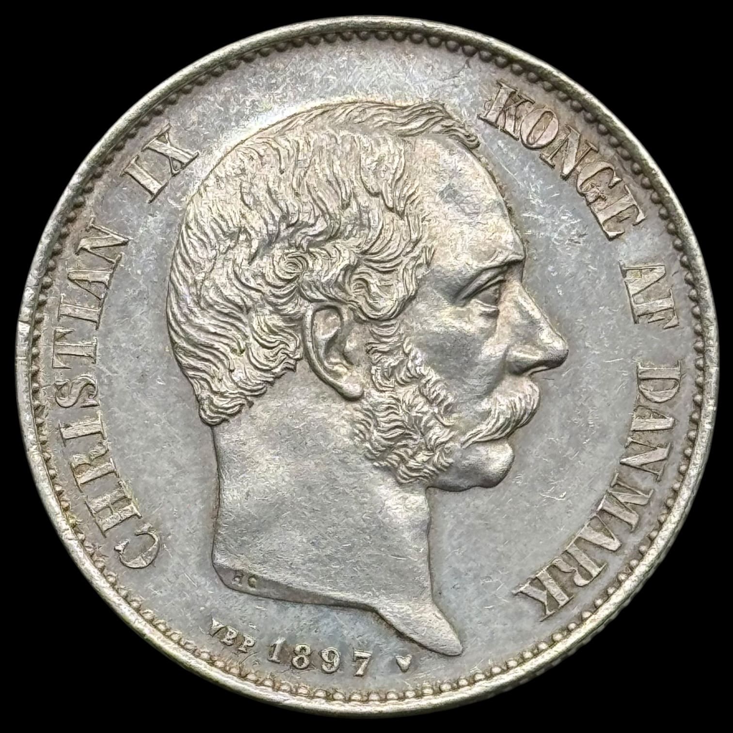1897, 2 kroner, Chr.IX, Sieg 1.2, Hede 13B, Kva. 0-M svag renset, “Medaljepræg”