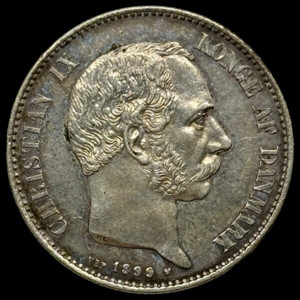 1899 2 krone Chr.lX Kva. 1+-01 “Renset”