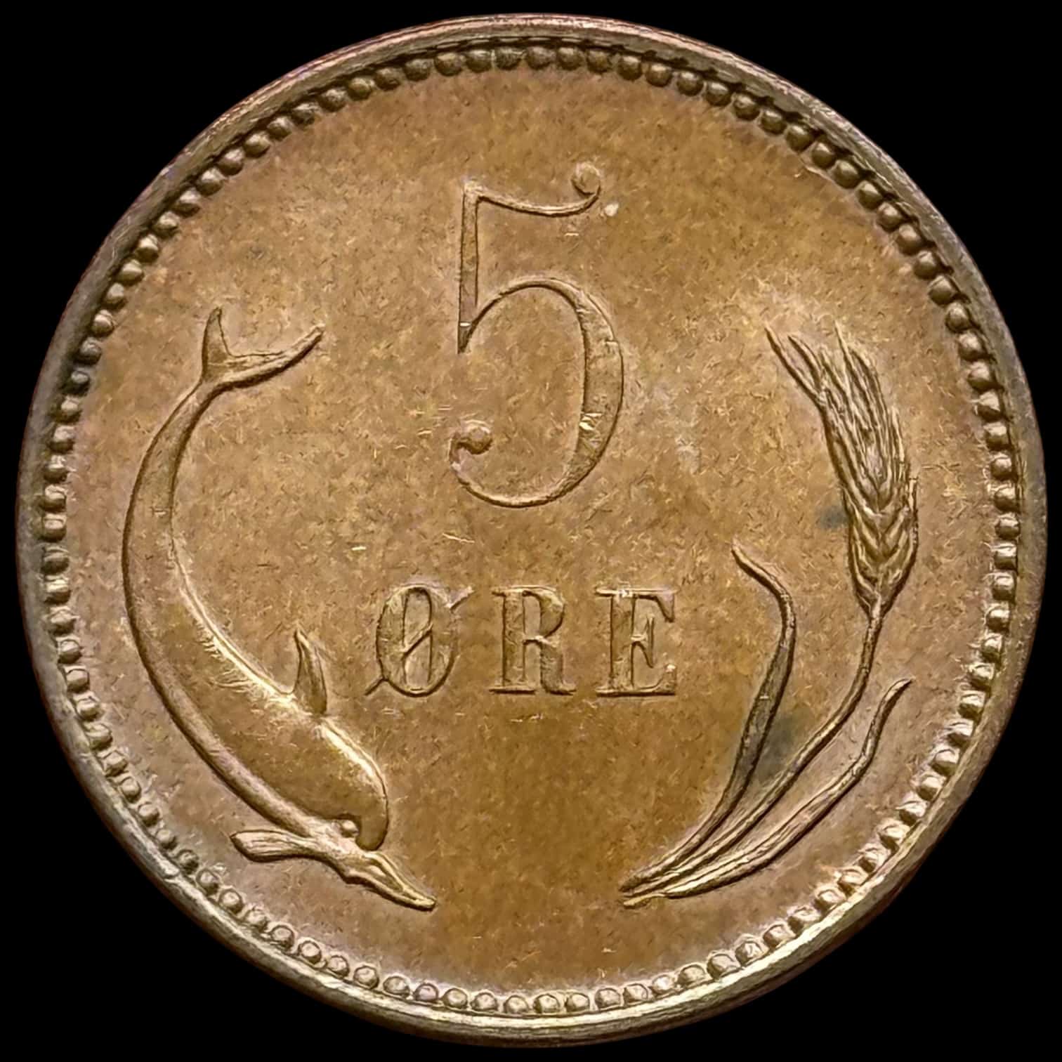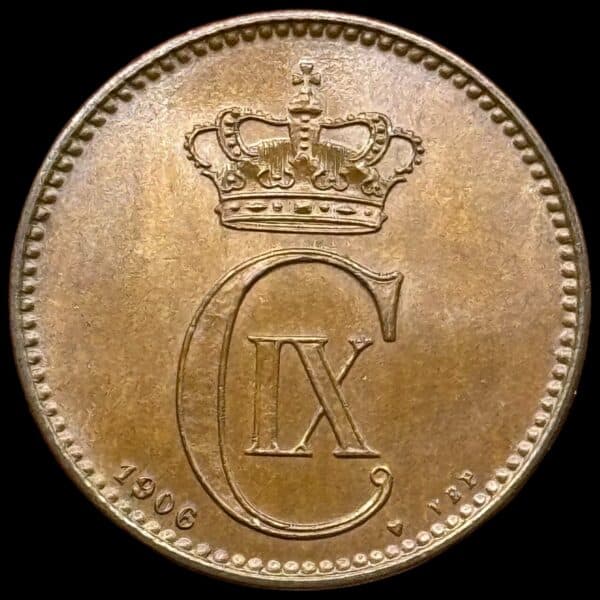 1906, 5 øre, Chr.IX, Sieg 1.2, Hede 17B, Kva. 0 “svag plet”