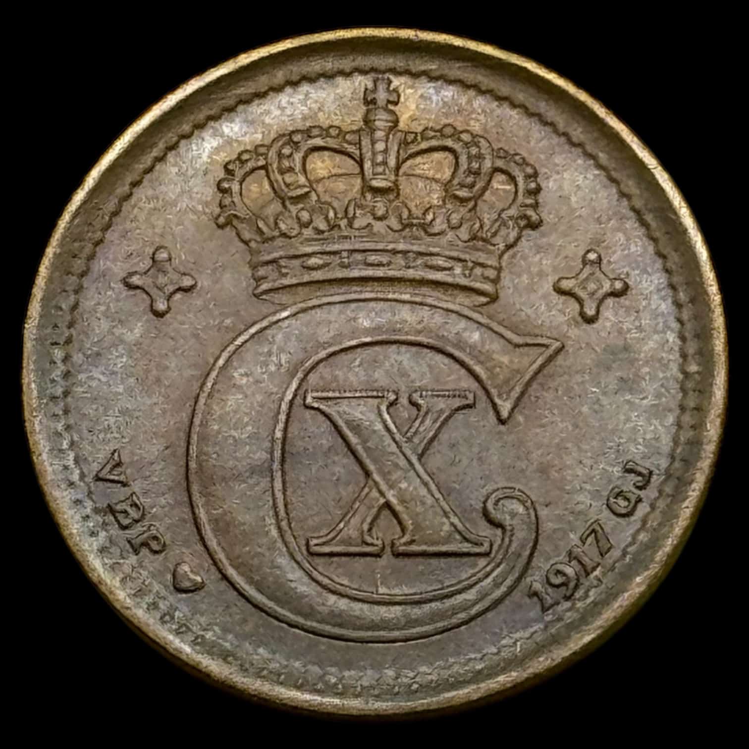 1917, 2 øre, Chr.X, Sieg 3.1, Hede 16A, Kva. 0