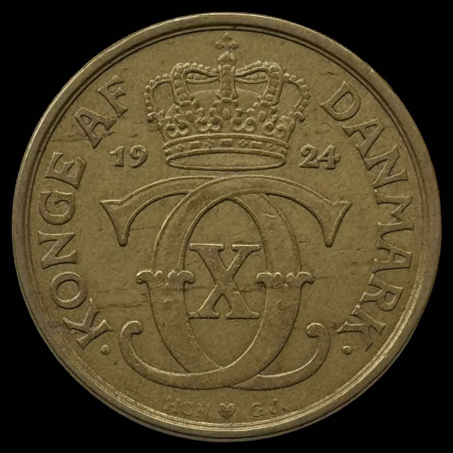 1924, 1 krone, Chr.X, Sieg 3.1, Hede 21A, Kva. 1+ “u.alm kvalitet”