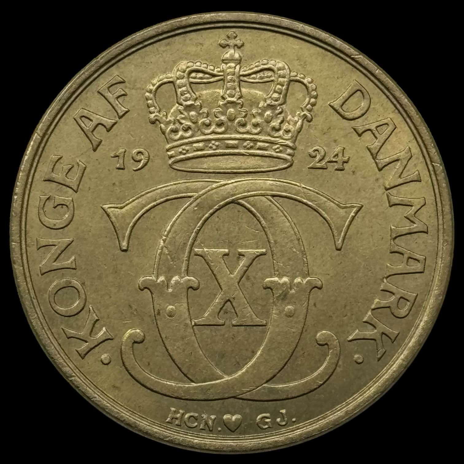 1924, 2 krone, Chr.X, Sieg 3.1, Hede 20A, Kva. 0 “Håndteringsspor” “Meget sjælden i denne kvalitet”