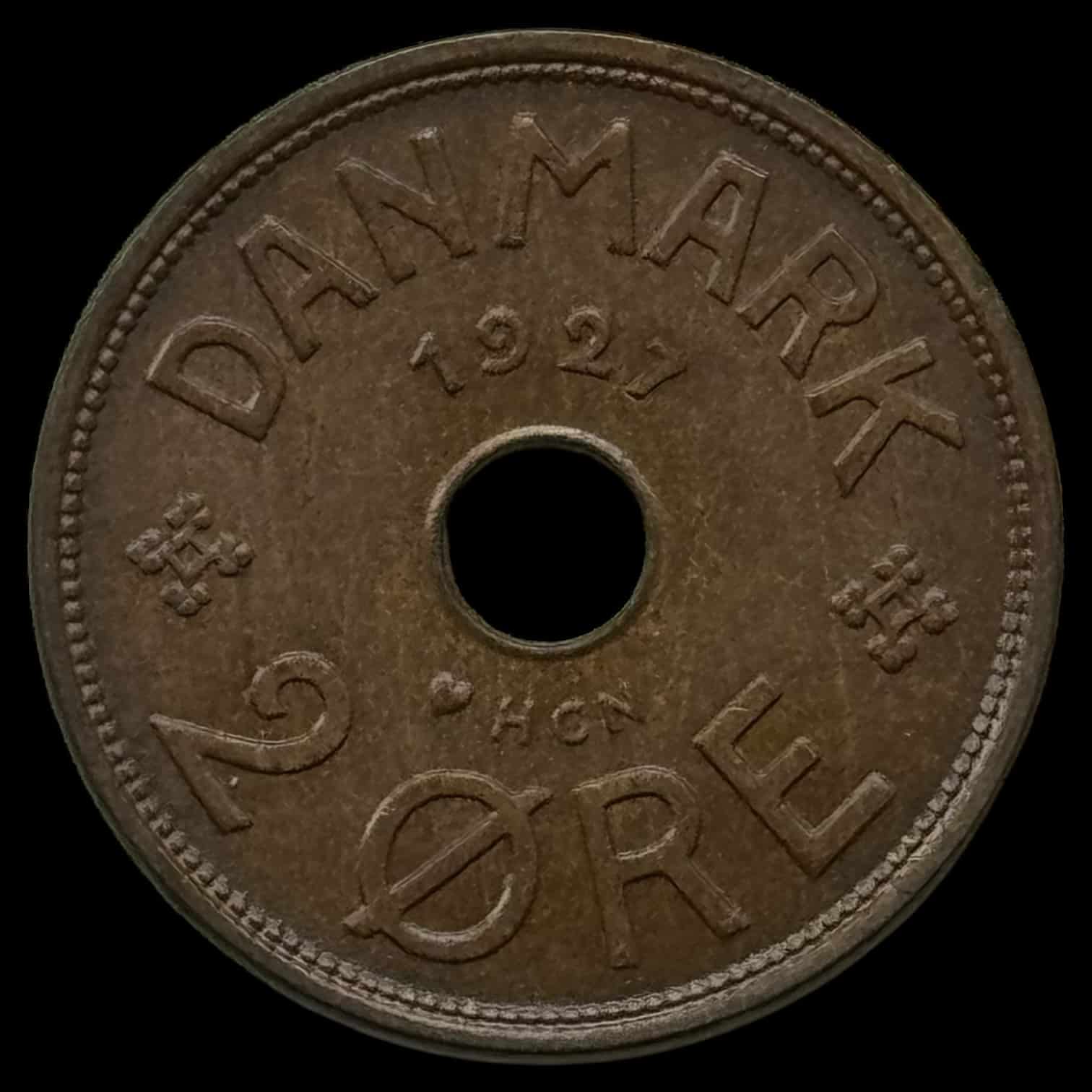 1927 HCN, 2 øre, Chr.X, Sieg 4.1, Hede 29A, Kva. 0