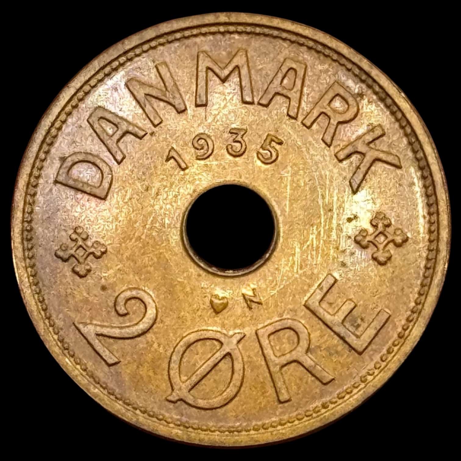 1935, 2 øre, Chr.X, Sieg 4.2 Hede 29B, Kva. M “Håndteringspor”