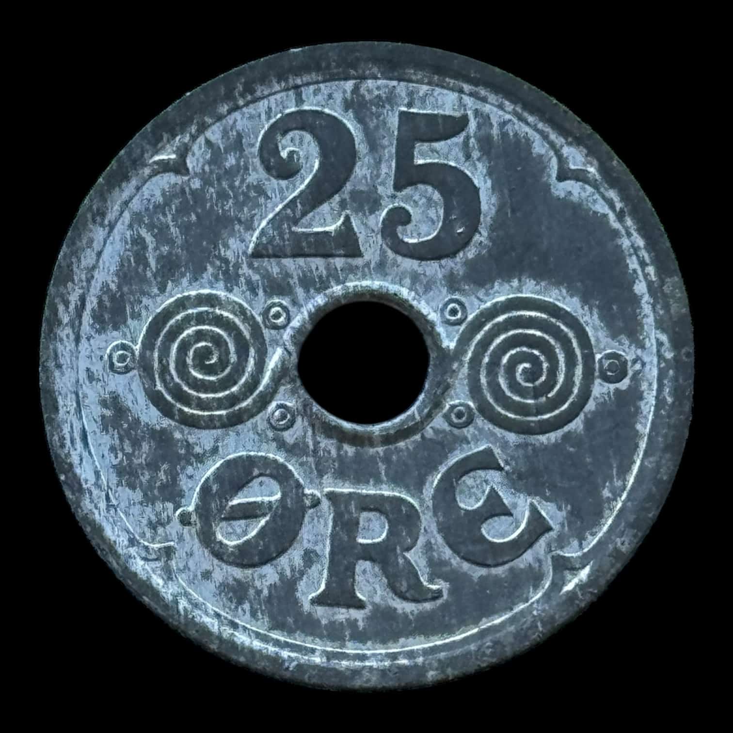 1944, 25 øre, Chr.X, Sieg 4.3, Hede 25, Kva. 0-01