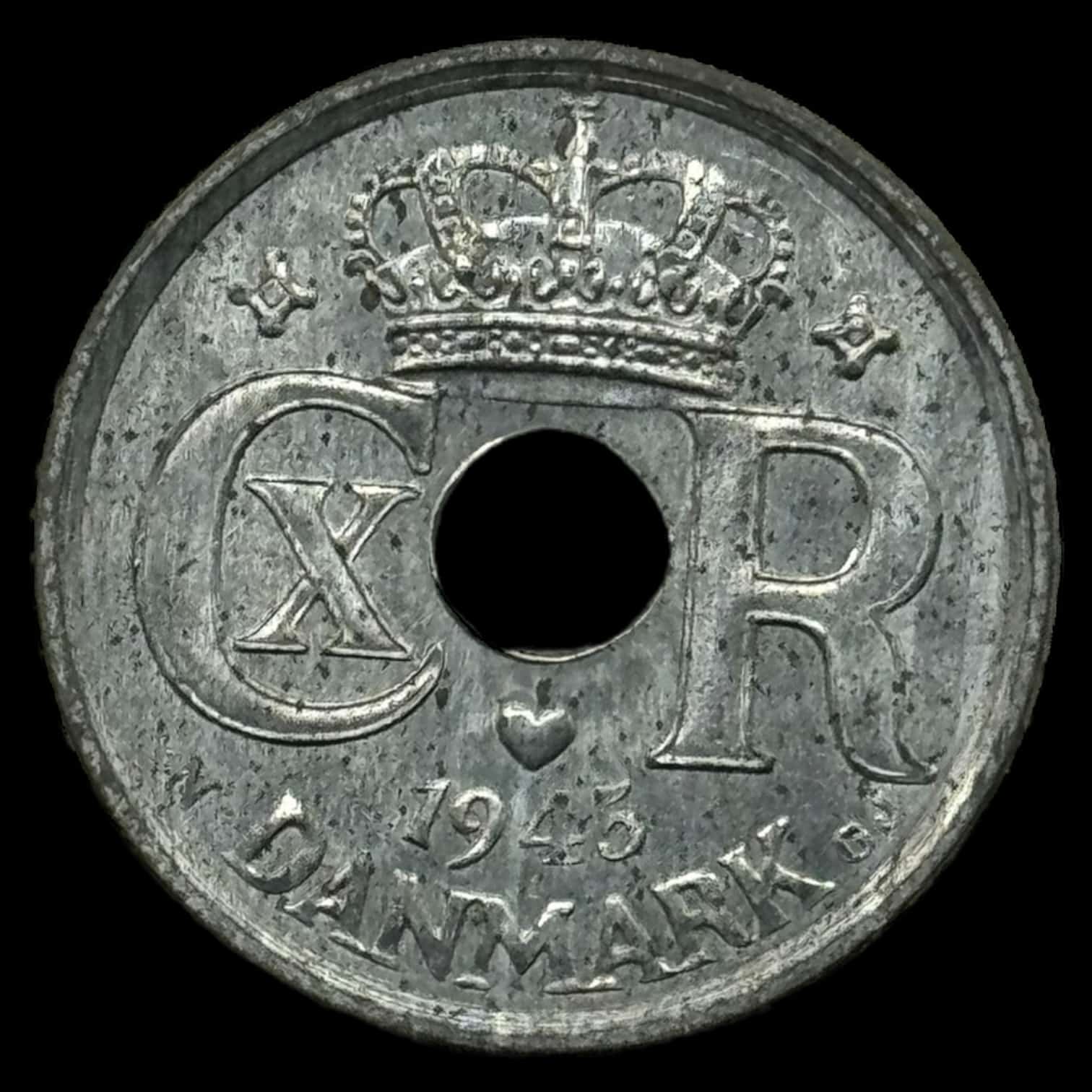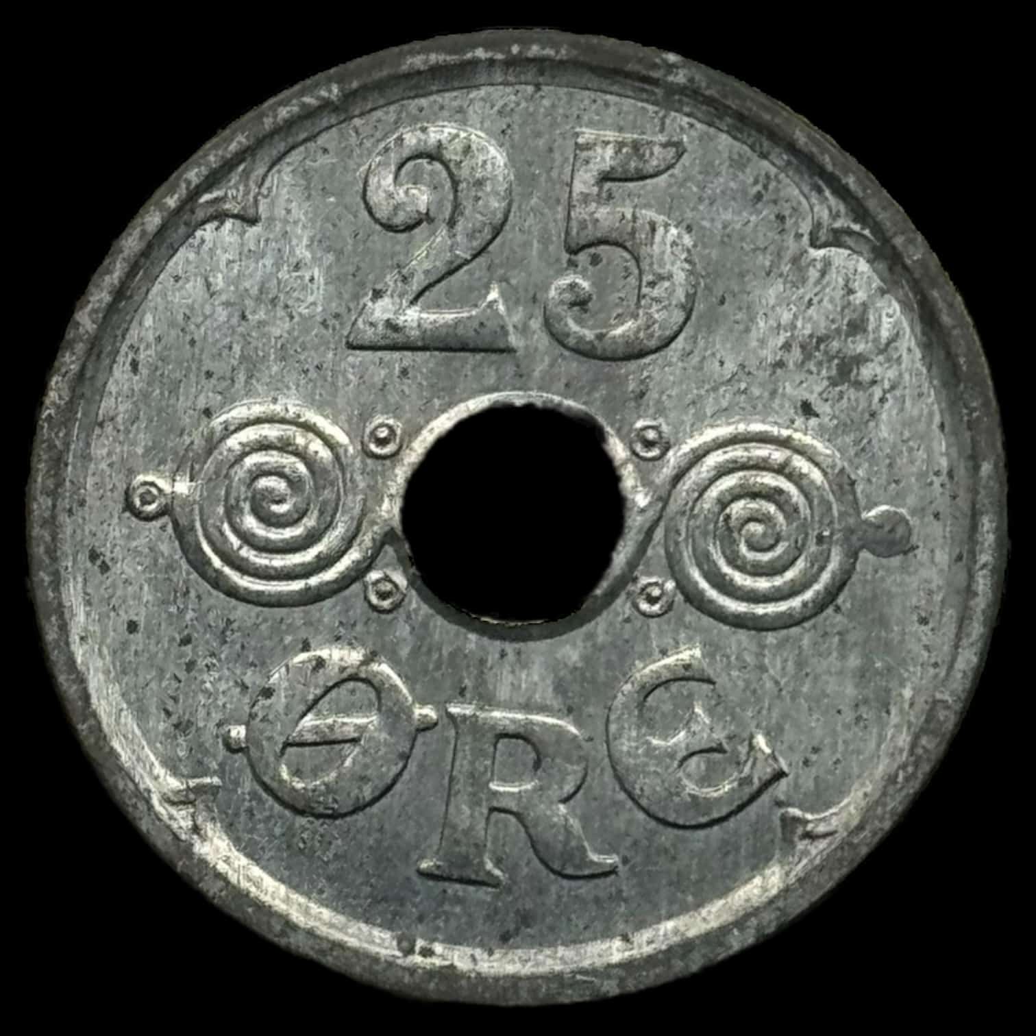 1945 25 øre Chr.X Kva. 0 Pragt eksemplar