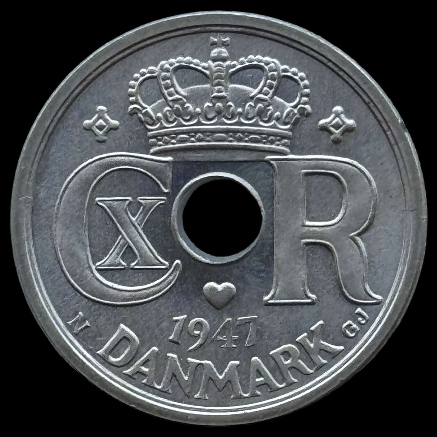 1947, 25 øre, Chr.X, Sieg 4.2, Hede 24B, Kva. M “Ex. Bent Petersen”