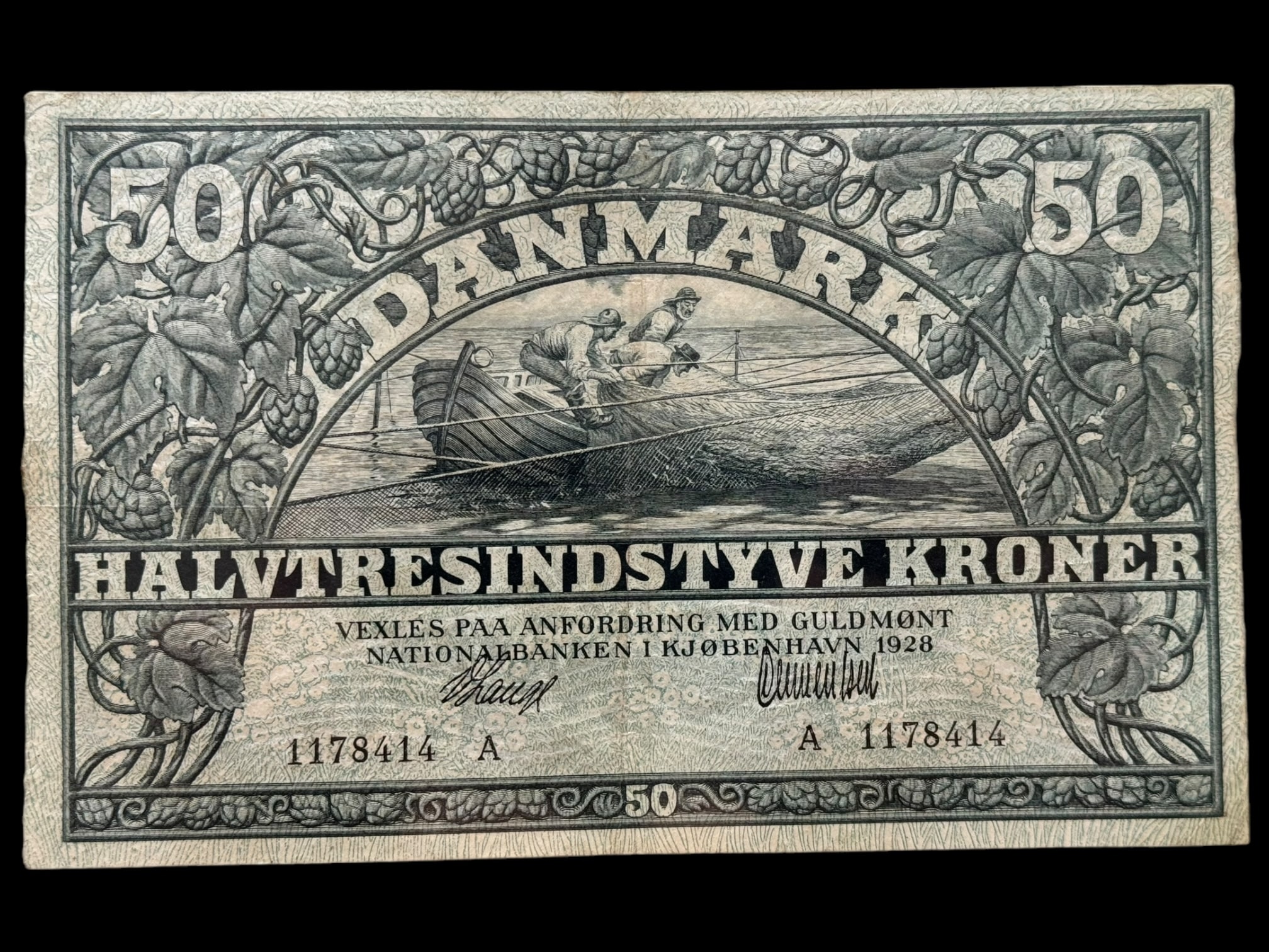 50 krone 1928 V.Lange/Clementsen Kva. 1+