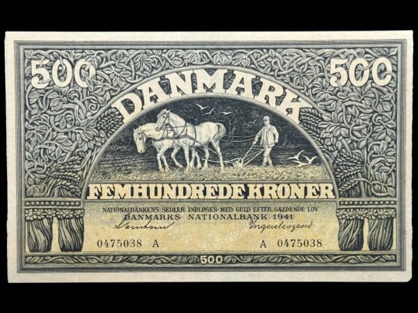 500 kroner 1941, Svendsen/Ingerslevgaard, Nr. 0475038, Sieg 114, DOP 127, Pick 34, Kva. 0 “Enestående eksemplar” sjælden i denne fornemme kvalitet