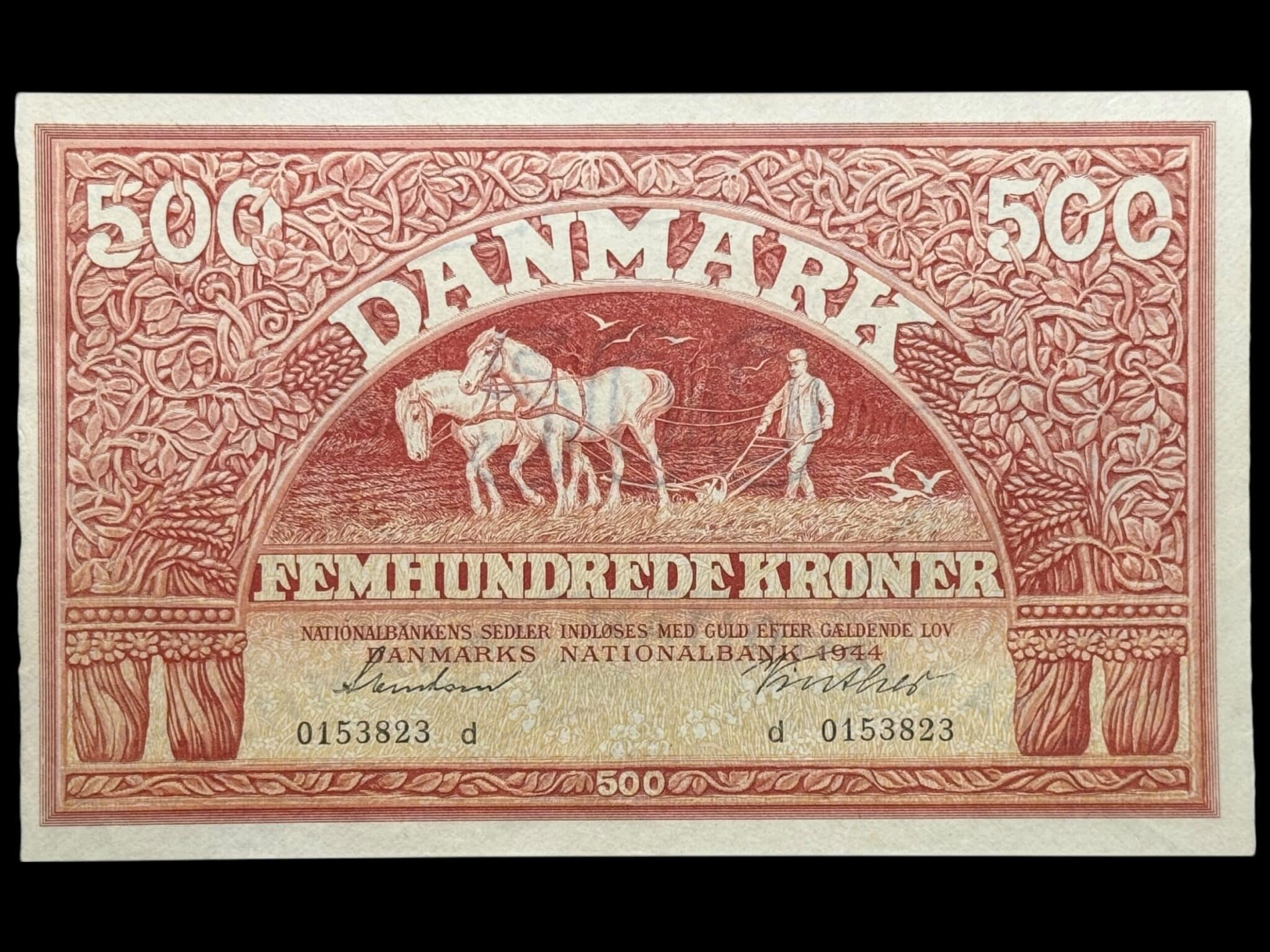 500 kroner 1944 d, Svendsen/Vinther, Nr. 0153823, Sieg 127, DOP 136, Pick 41, Kva. 0 “Enestående eksemplar”