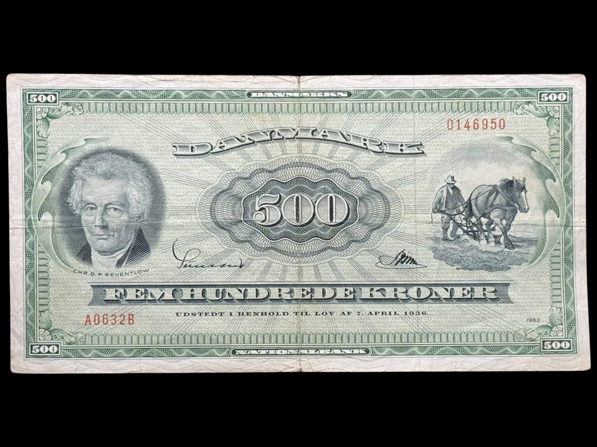 500 kroner 1963 A0, Riim/Sunesen, Nr. 0146950, Sieg 138, DOP 147, Pick 47, Kva. 1
