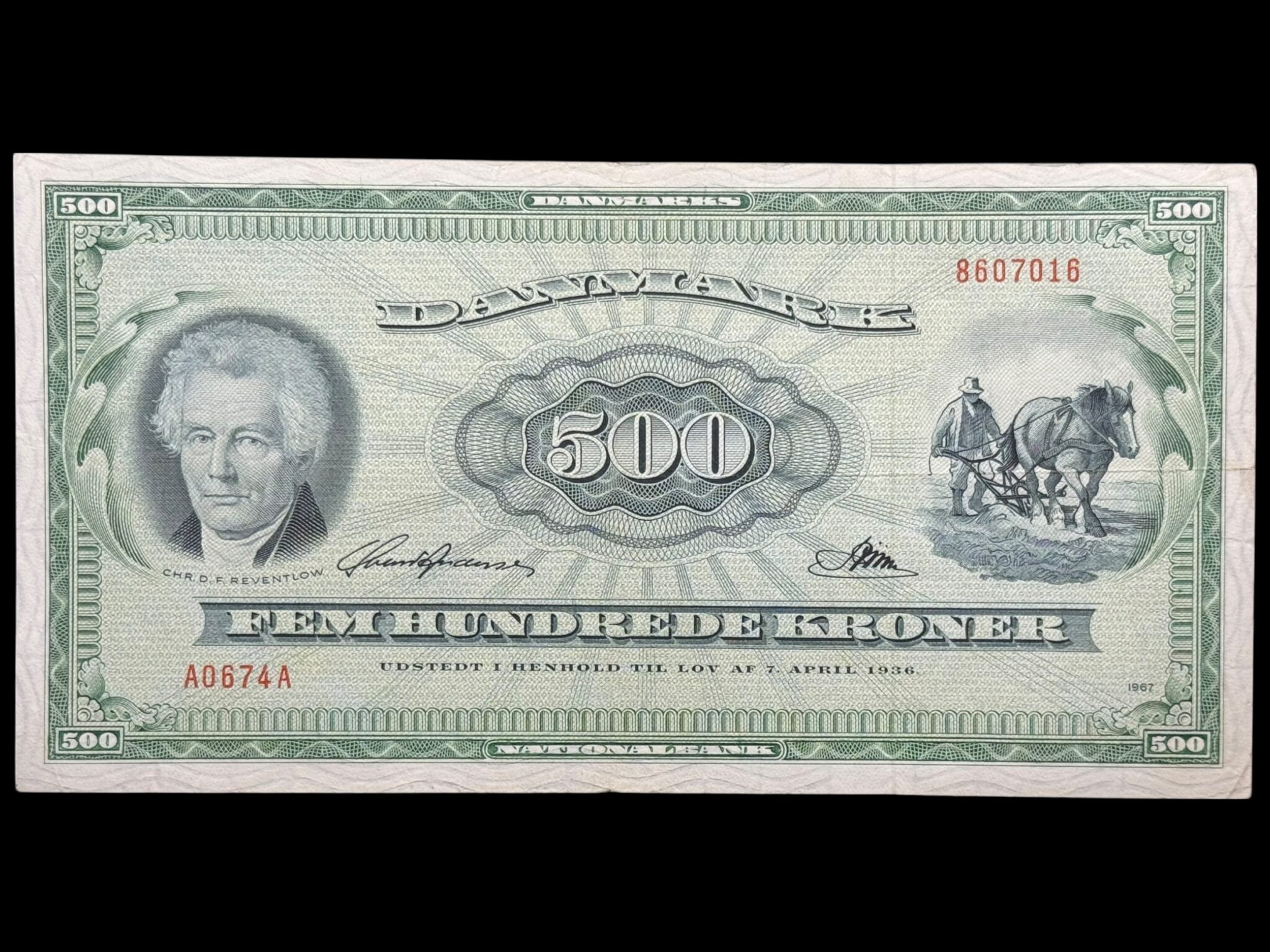 500 kroner 1967 A0, Riim/Svend Andersen, Nr. 8607016, Sieg 138, DOP 147, Pick 47, Kva. 1+