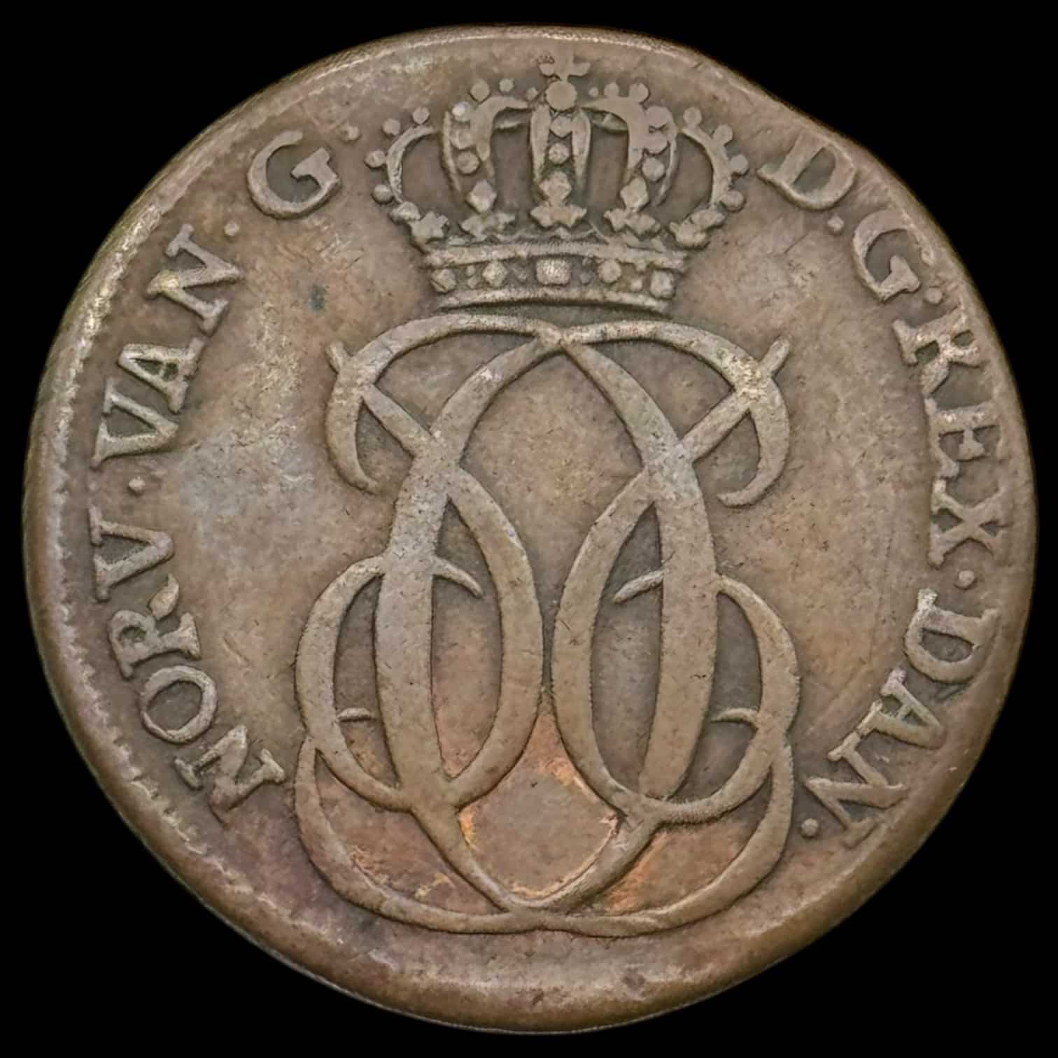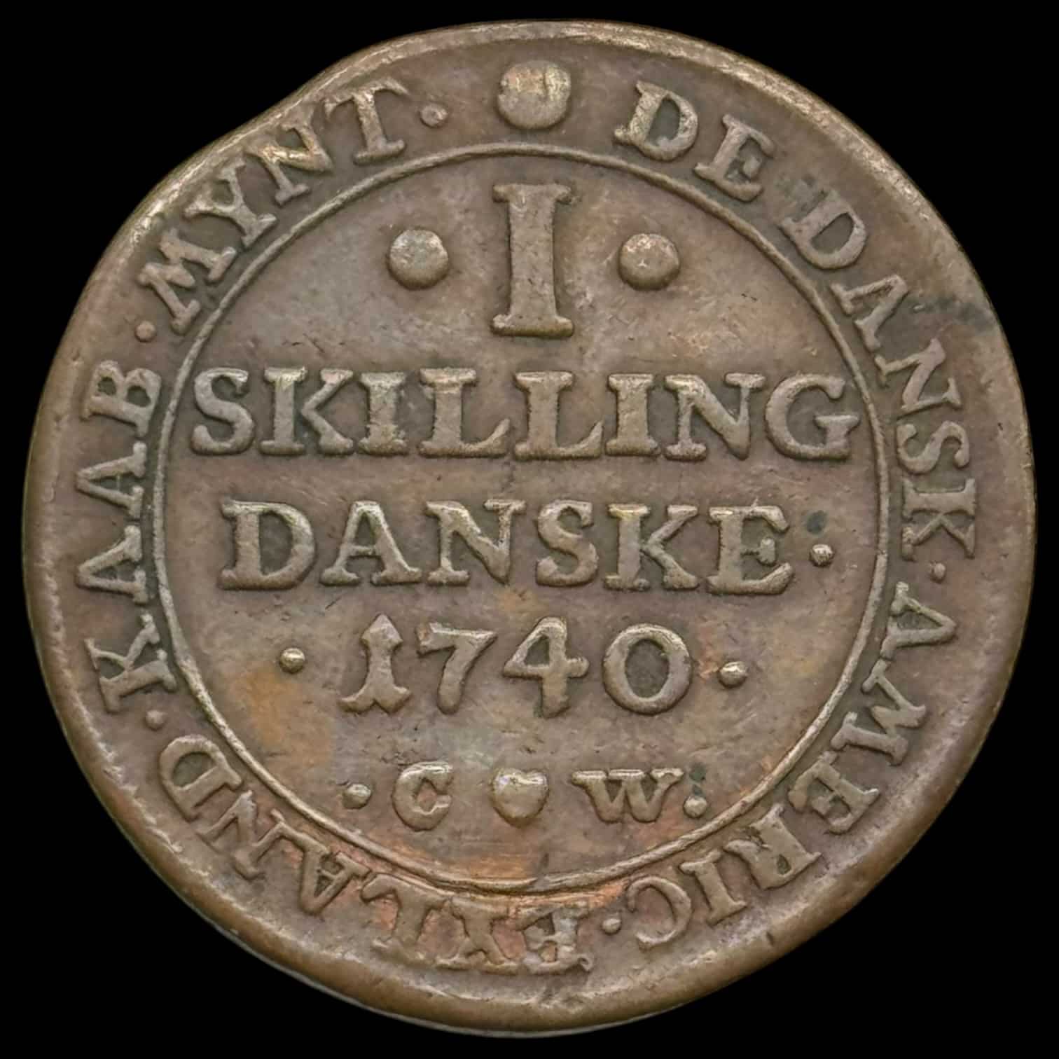 Dansk Vestindien, 1 skilling 1740, Chr.IV, Sieg 1, Hede 3, KM 3, Kva. 1+