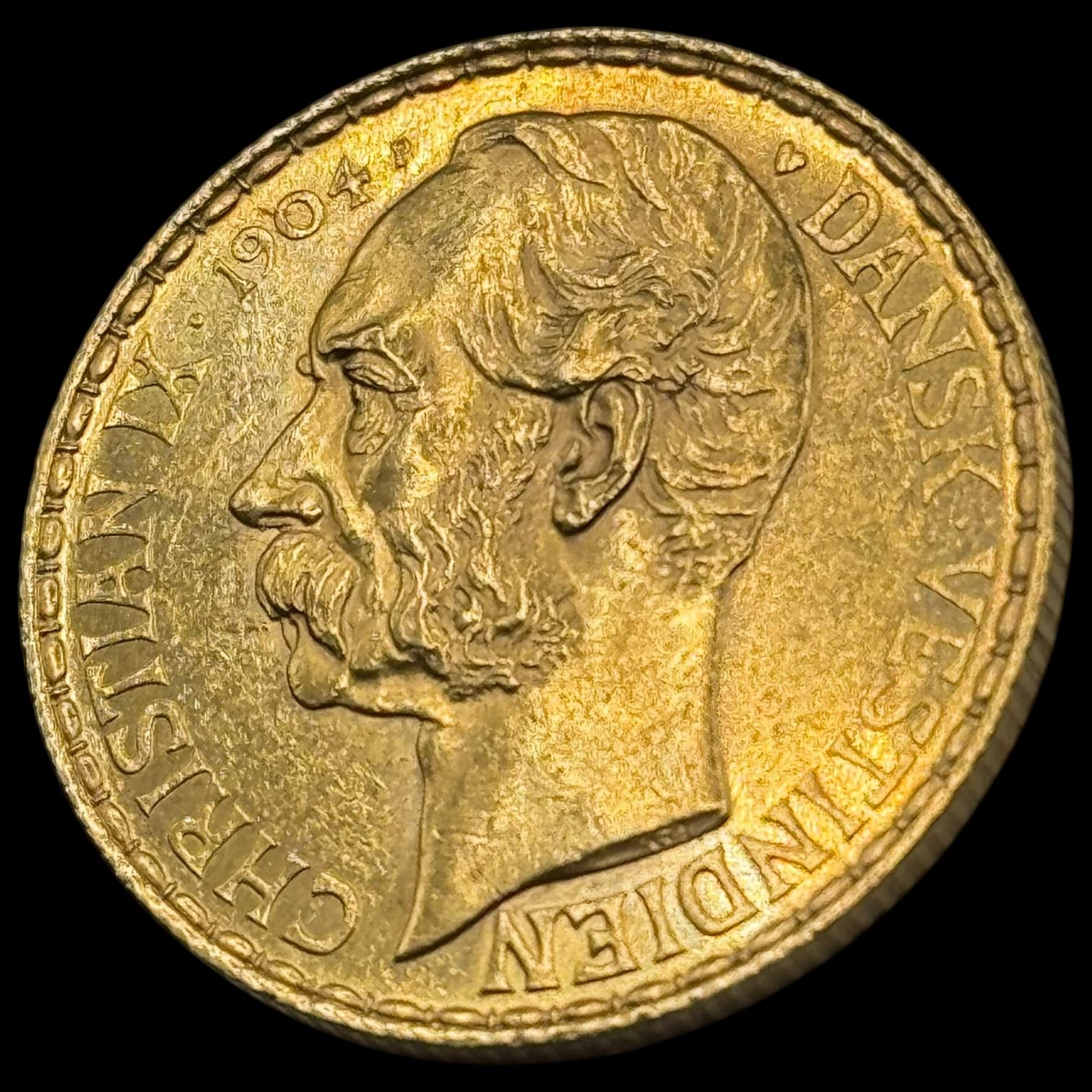 Dansk Vestindien, 10 daler / 50 Francs 1904, Chr.IX, Sieg 32, Hede 29, KM 73, F 1, Kva. 01, Ex. BR 913/202 “2023” smukt eksemplar af denne type, der kun er slået i 2005 eksemplarer