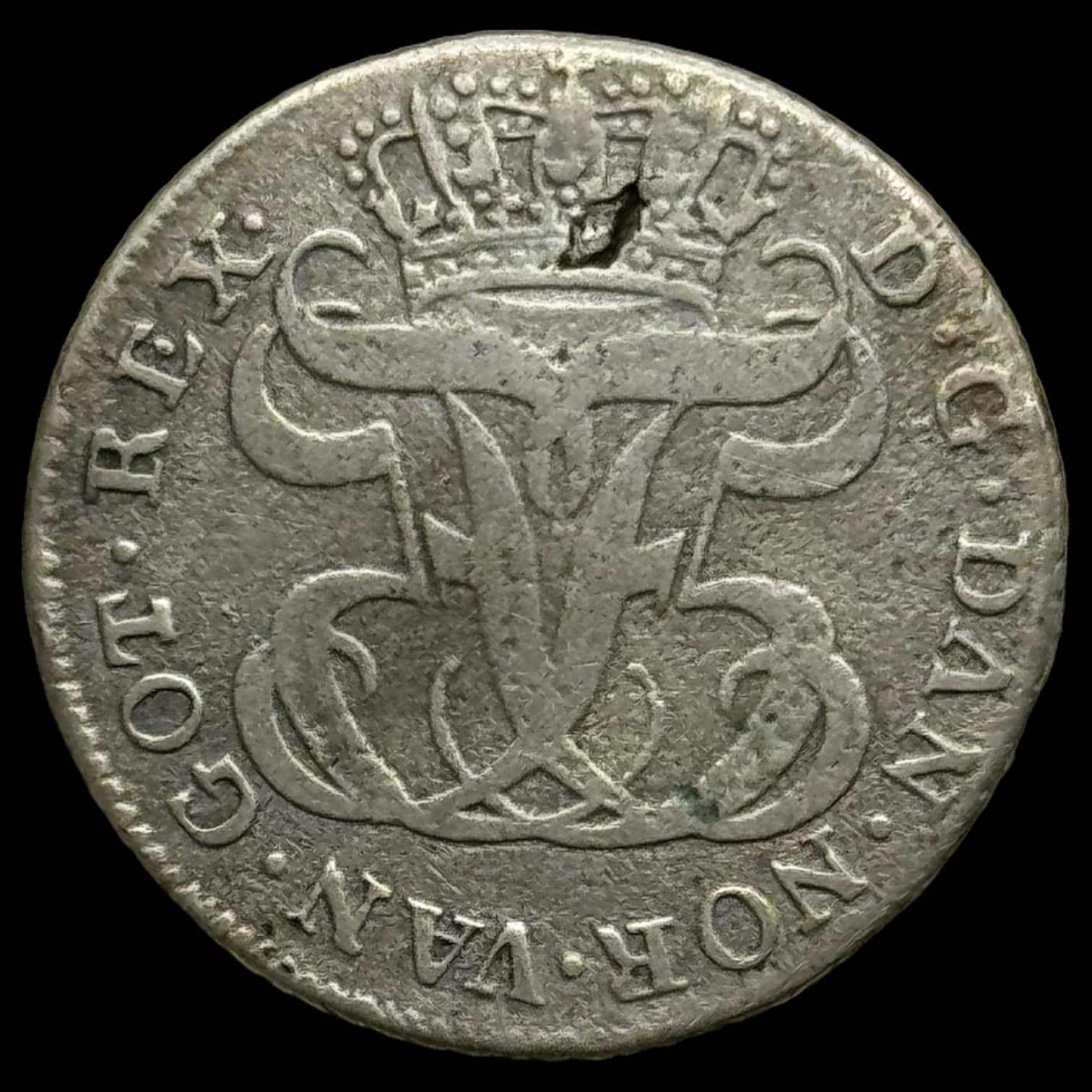 Dansk Vestindien 1764 12 skilling Fre.V Kva. 1-1+