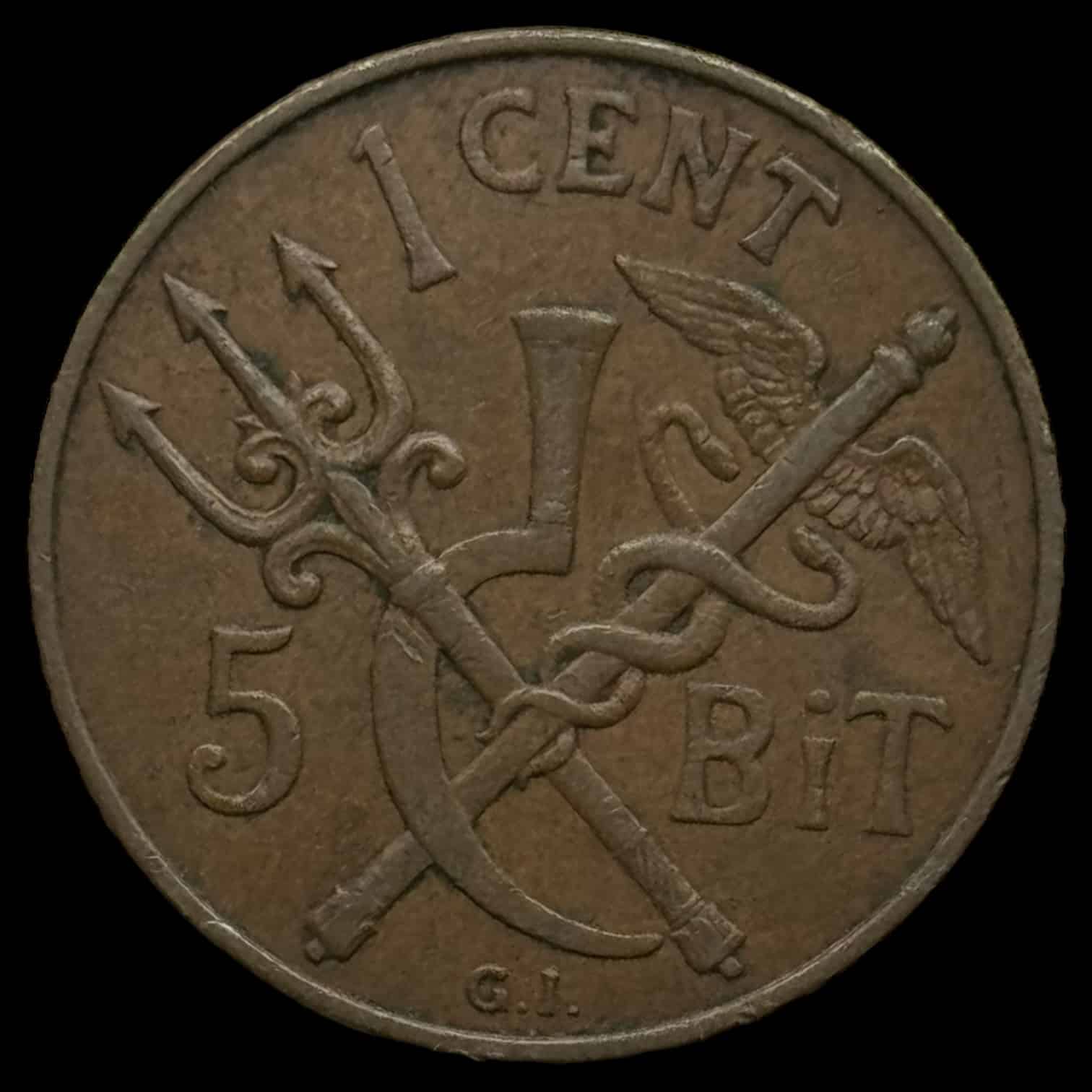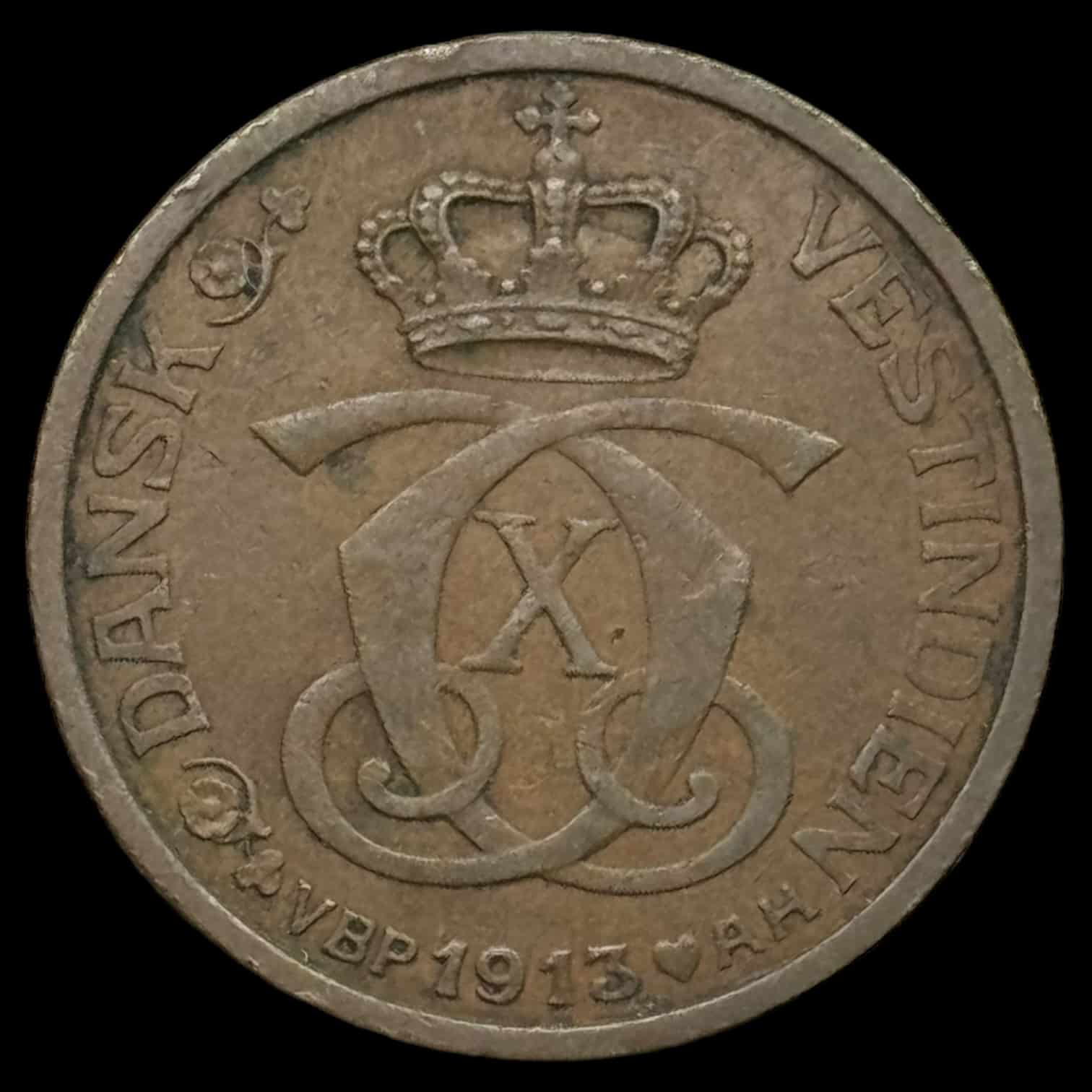 Dansk Vestindien 1913 1 cent/5 bit Fre.Vlll Kva. 1+