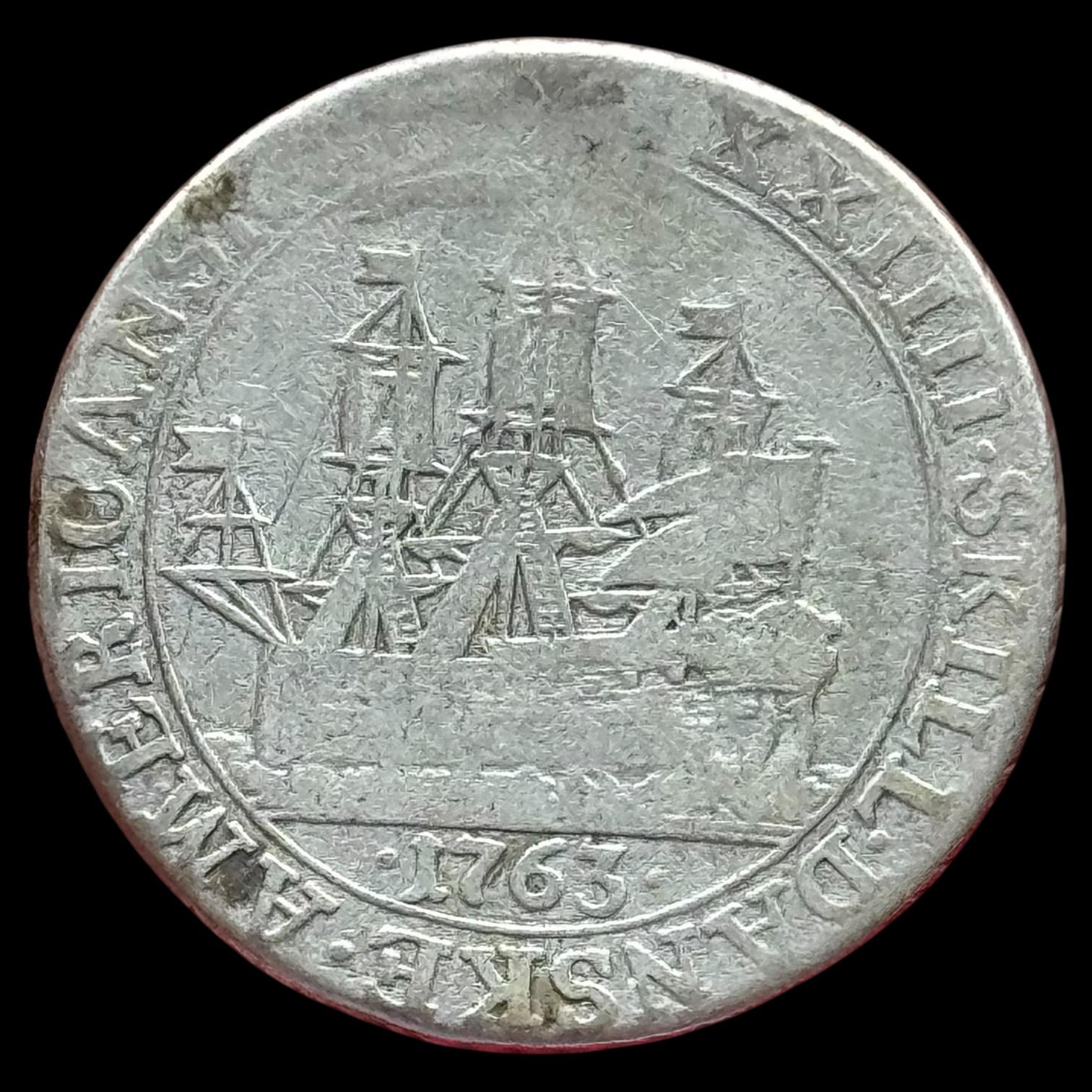 Dansk Vestindien, 24 skilling 1763, Fre.V, Sieg 7, Hede 6, KM 9, Kva. 1