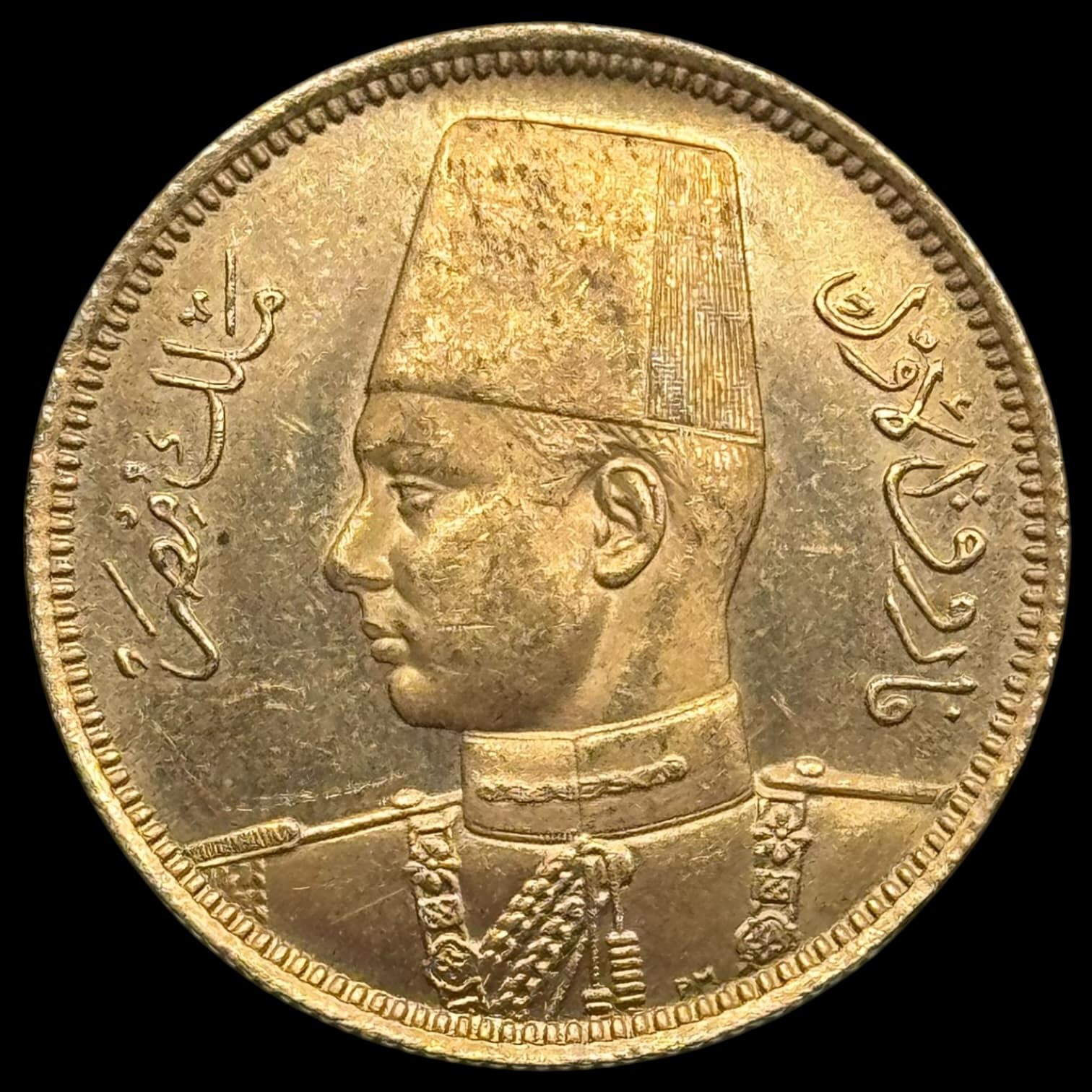 Egyten, Pound / 100 Piastres 1357 “1938”, Farouk “Kongelig bryllup”, KM 372, MHC 263, 8,5 gram 0.875 / 21 karat, Kva. 0-01 “oplag 5.000 stk”
