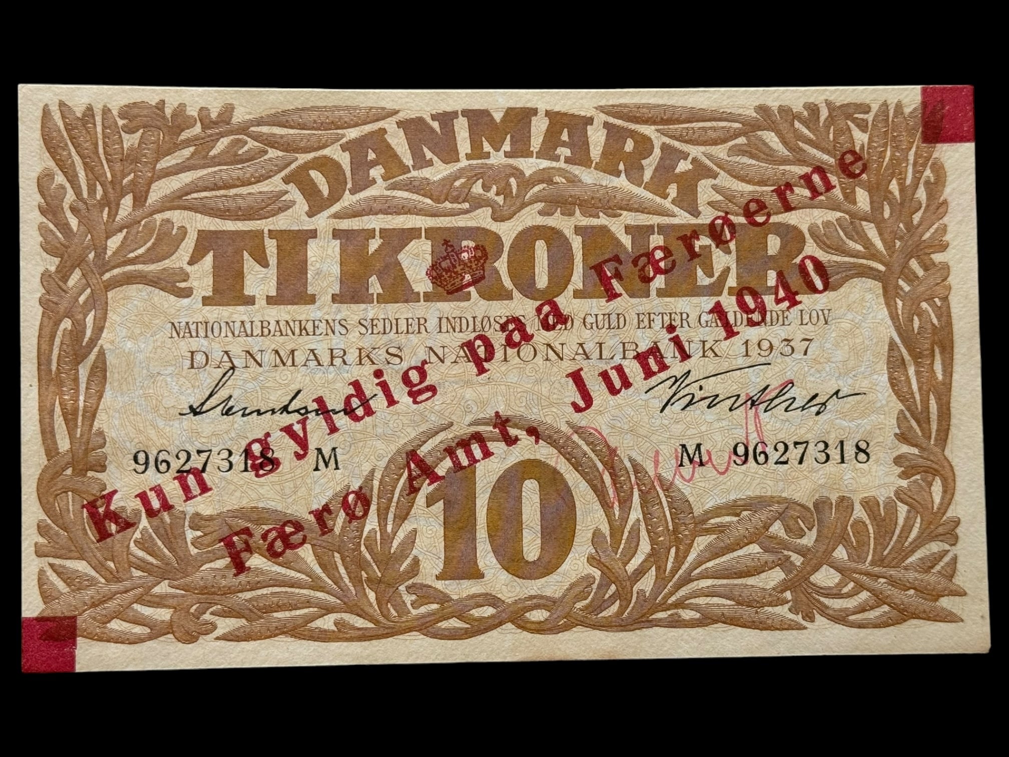 Færøerne 10 krone 1937 M Svendsen/Vinther Kva. 0 “Håndskrevet underskrift”