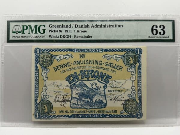 Grønland, 1 Krone 1911 Oscar Wesche/ Munch, Kva. 0 “Blanket”