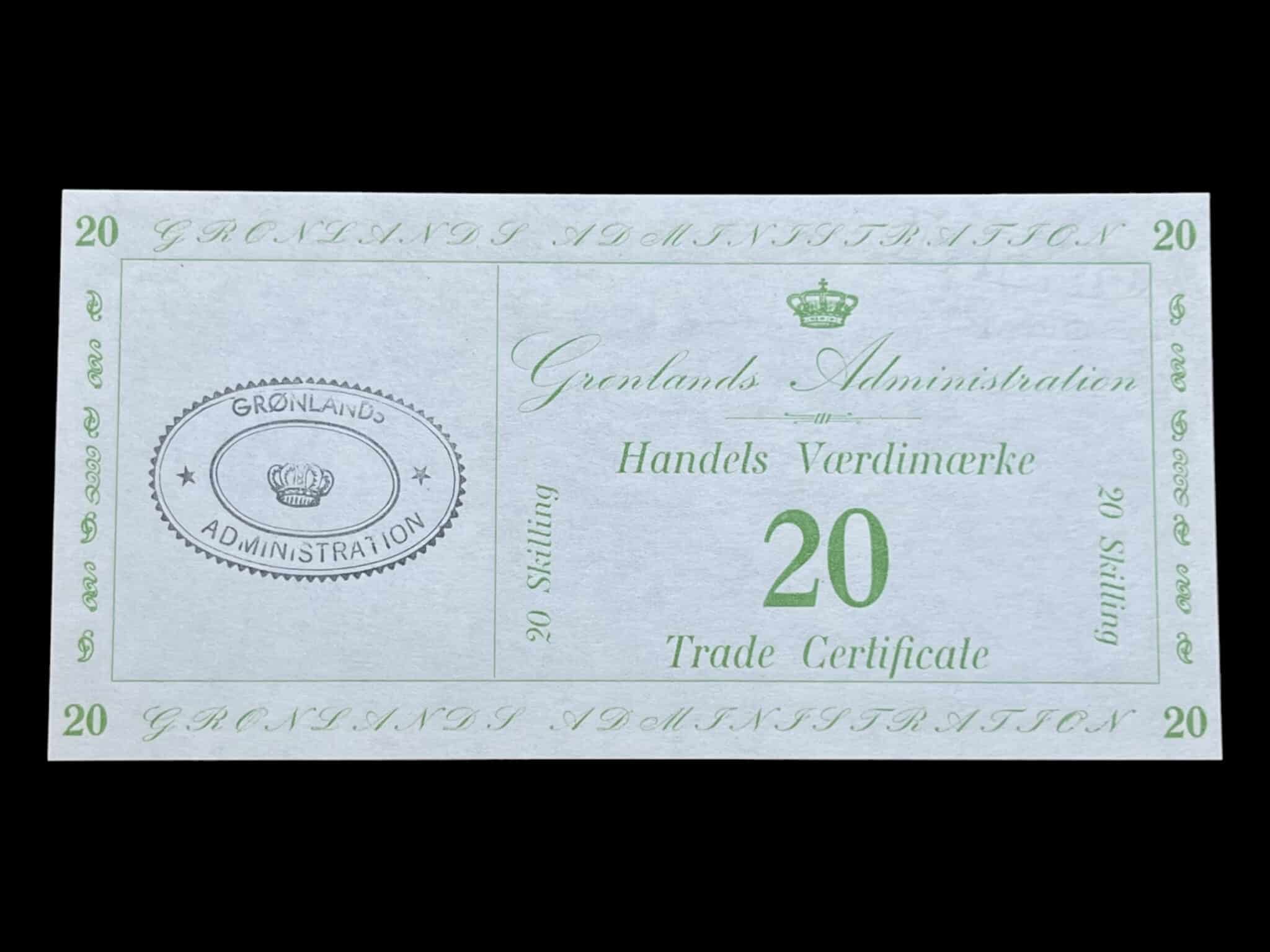 Handel værdimærke, 20 skilling, Kva.0 / UNC