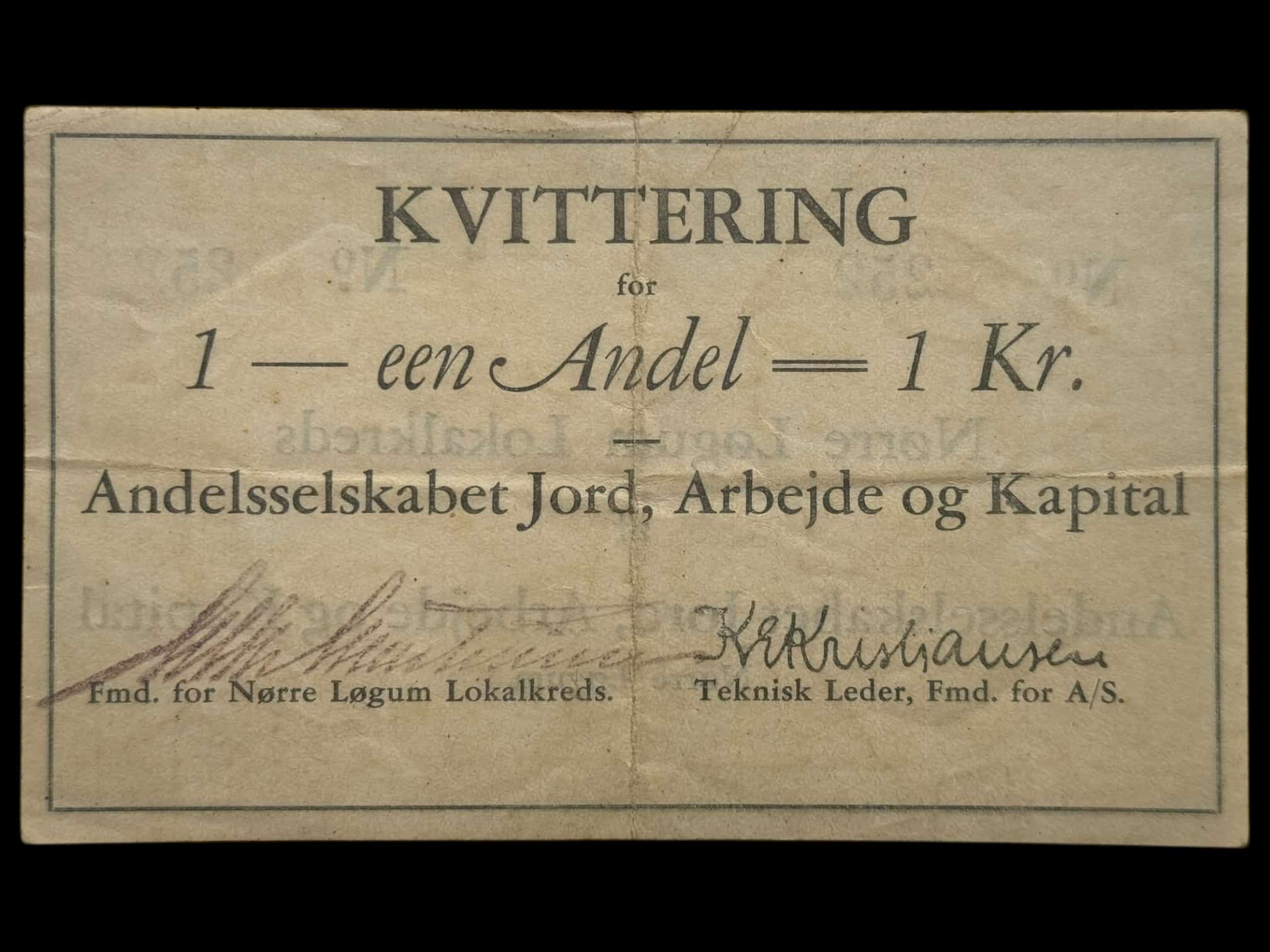 J.A.K Sedler, 1 andel = 1 krone, uden dato “Juli 1931”, Sieg 2, Nr. 252, Kva. 1+