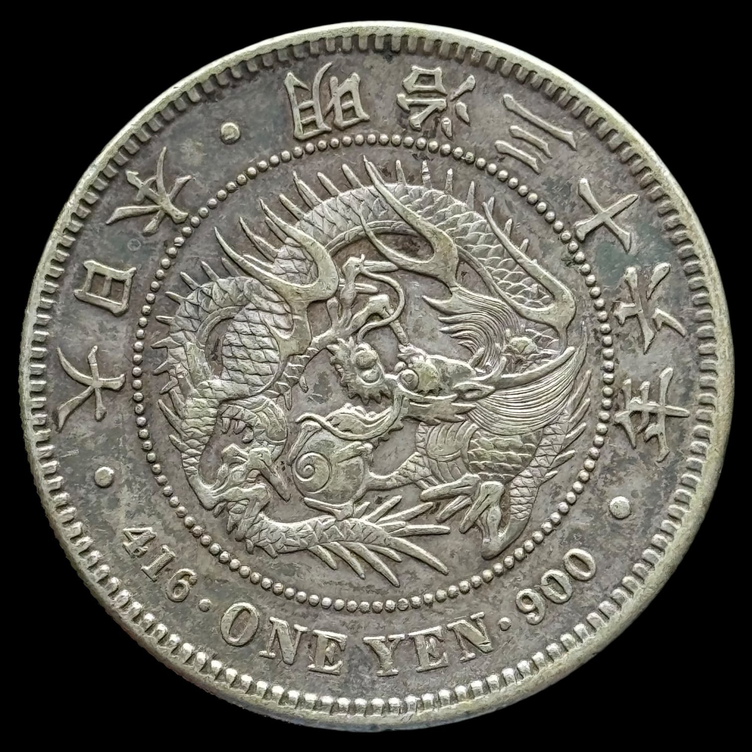 Japan, one yen, år 36 “1903, KM / Y A25.3, Kva. 1+-01