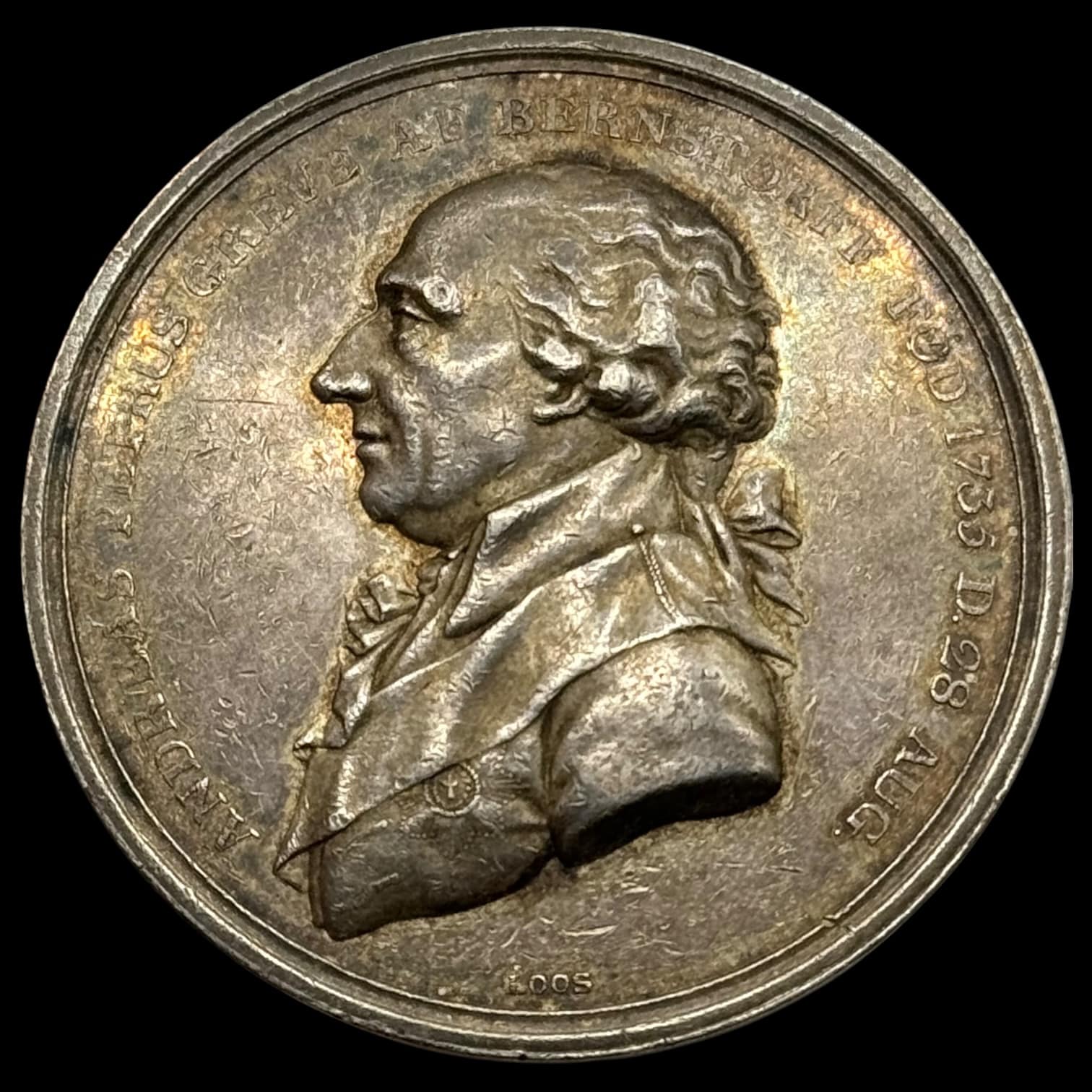 Medalje, danmark, Sølv, Grev Andreas Peter Bernstorff 1796, Loos, Bergsøe 1020, Kva. 01