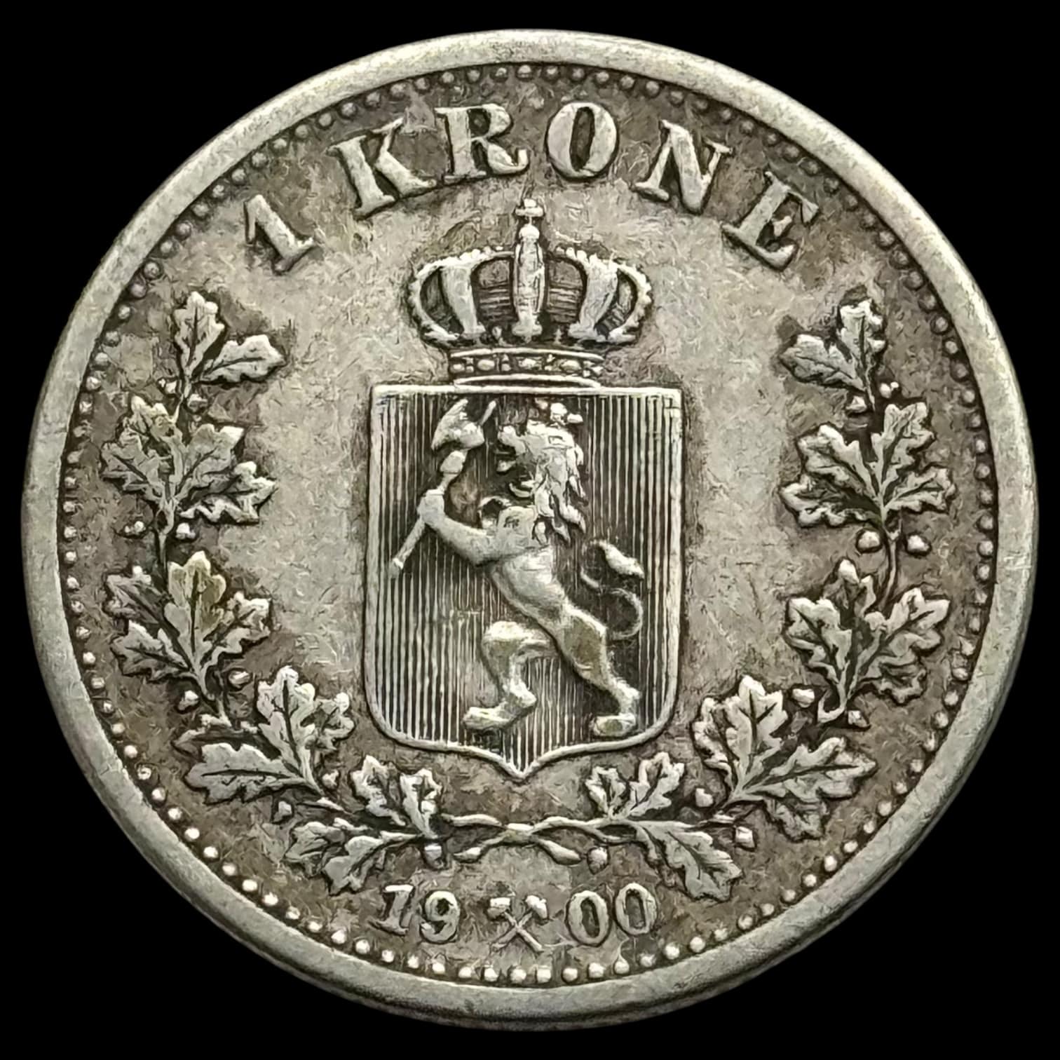 Norge, 1 krone 1900, Oscar ll, Sieg 58, NM 47, Kva. 1-1+
