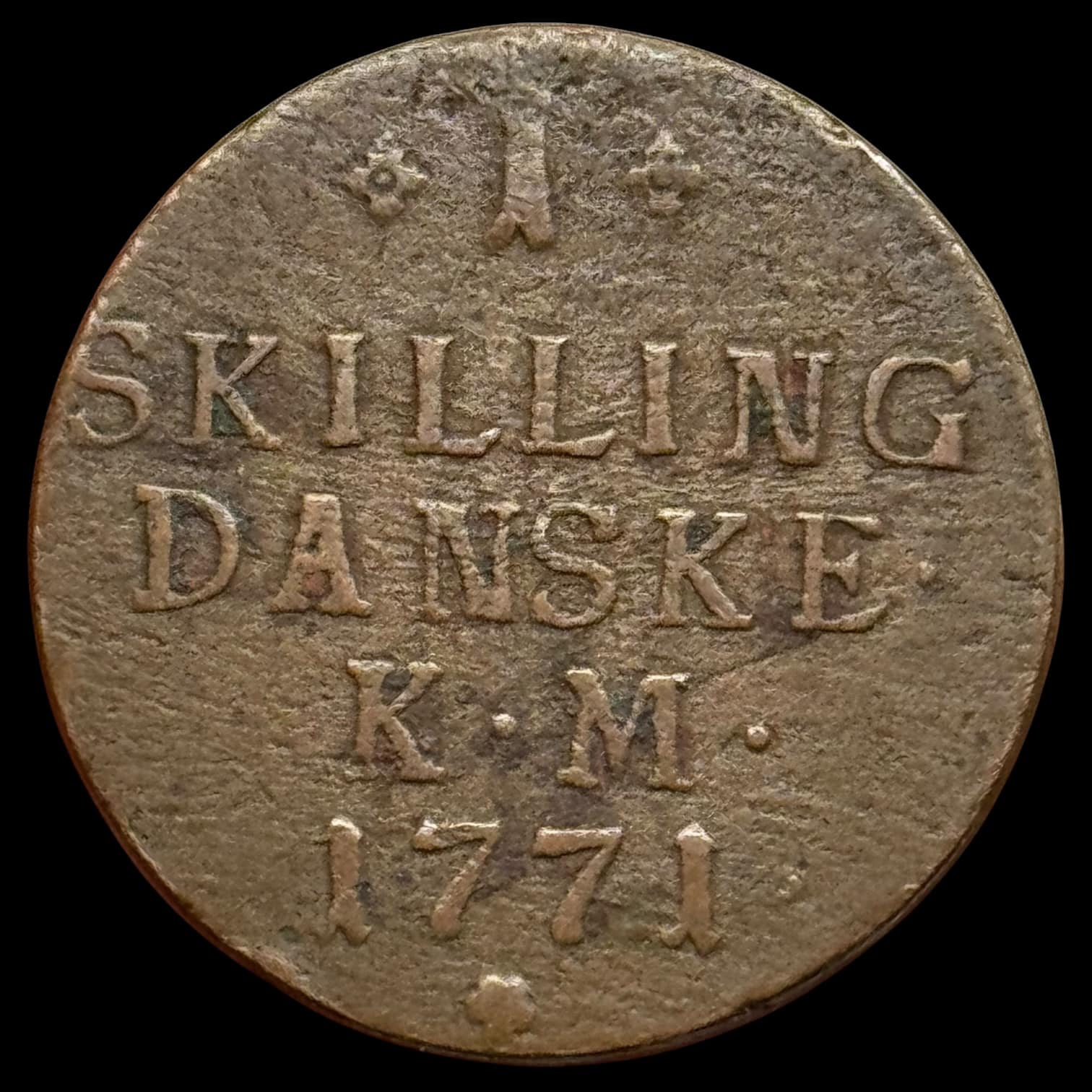 Norge, 1 skilling 1771, Kongsberg, Hede 37, Kva. 1+-1