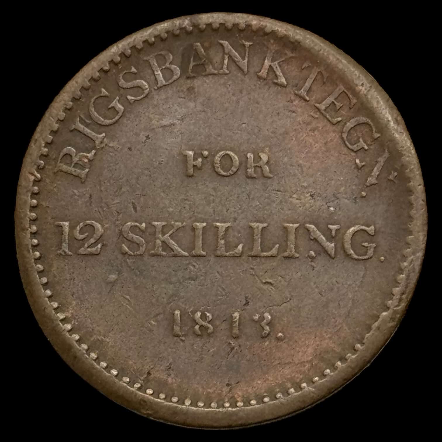 Norge, 12 skilling 1813 Fre.Vl, Kongsberg, NM 9, Hede 19, Kva. 1+