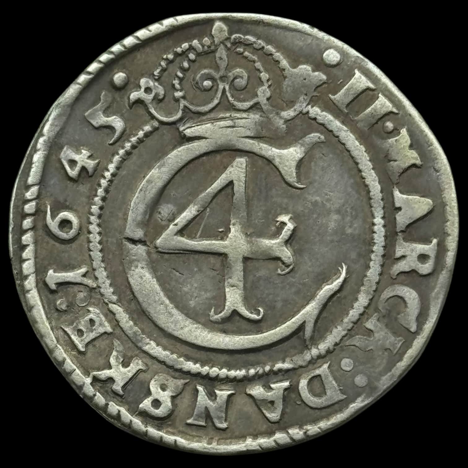 Norge, 2 mark 1645 “Hebræer”, Sieg 7.2, Hede 19, NMD 114, Kva. 01-1+ “u.alm kvalitet”