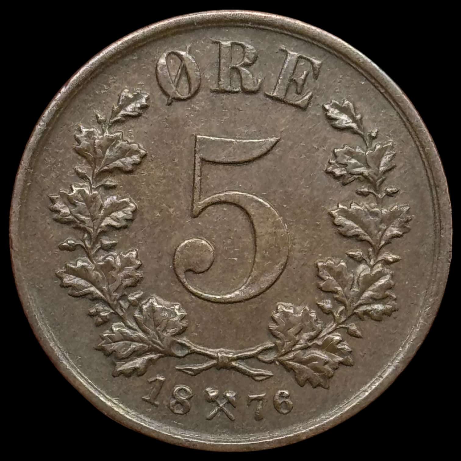 Norge, 5 øre 1876, Oscar ll, Sieg 16, NM 97, Kva. 01