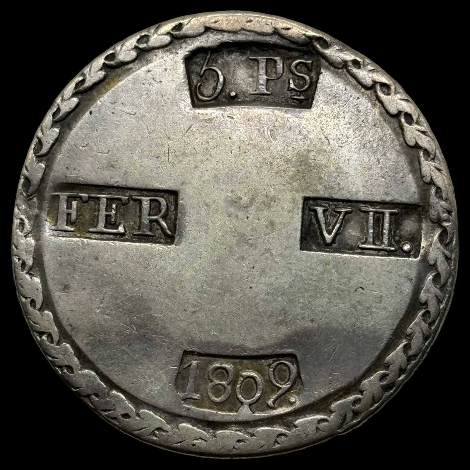 Spanien, 5 Pesetas 1809, Fernando VII, Tarragona, CCT 104, KM 6, Kva. 1+-01