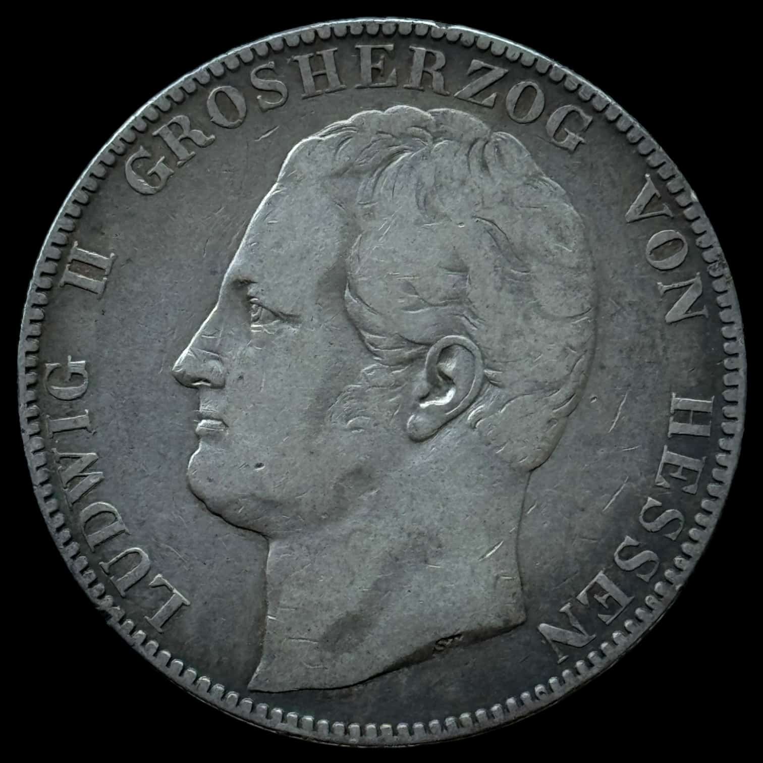Tyskland, 2 Thalers / 3 1/2 gulden 1841, Louis ll, Hesse-Darmstadt, KM 310, Dav. 702, Kva. 1-1+ F/VF