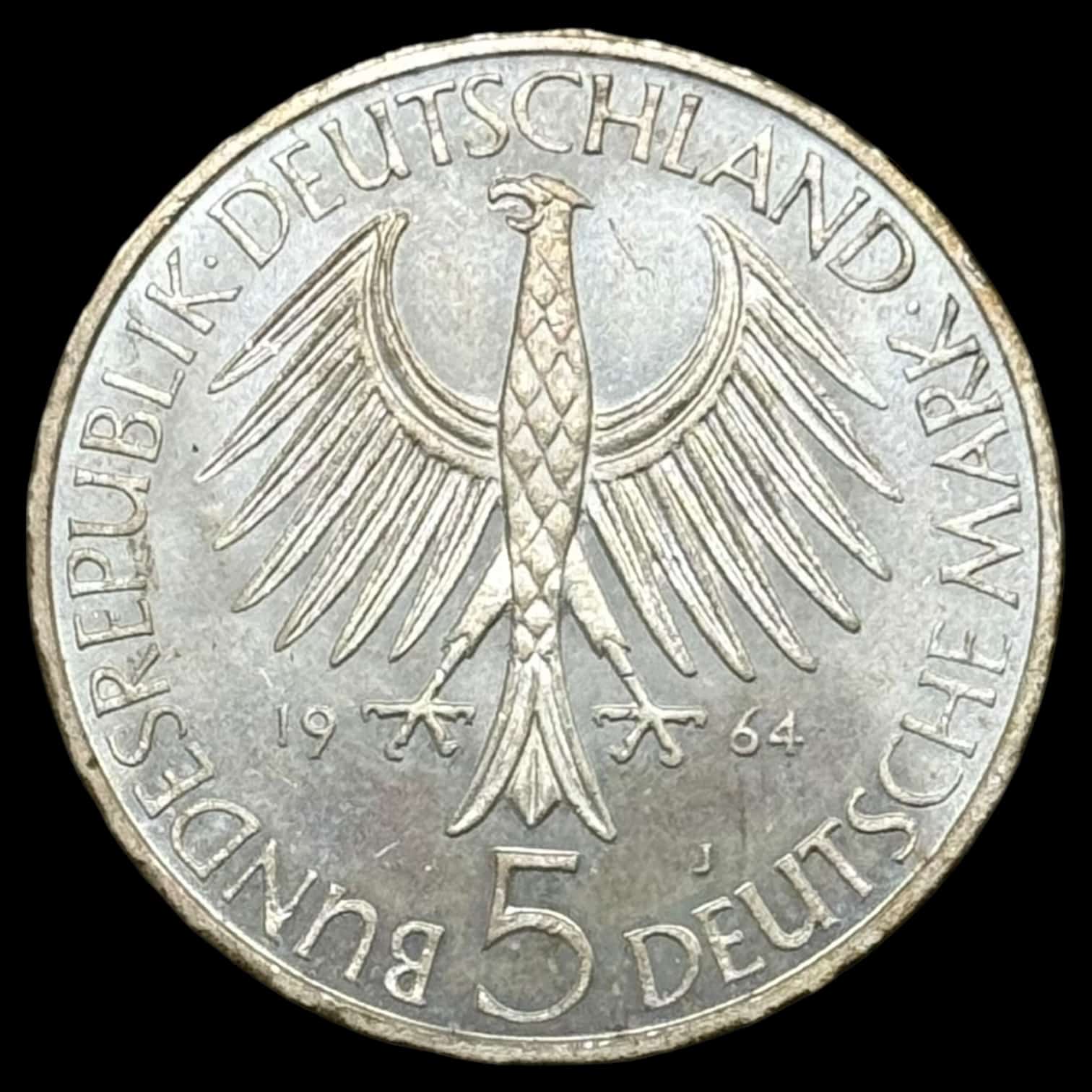 Tyskland, 5 Mark 1964 J, Johann Gottlieb Fichte, Kva. Proof